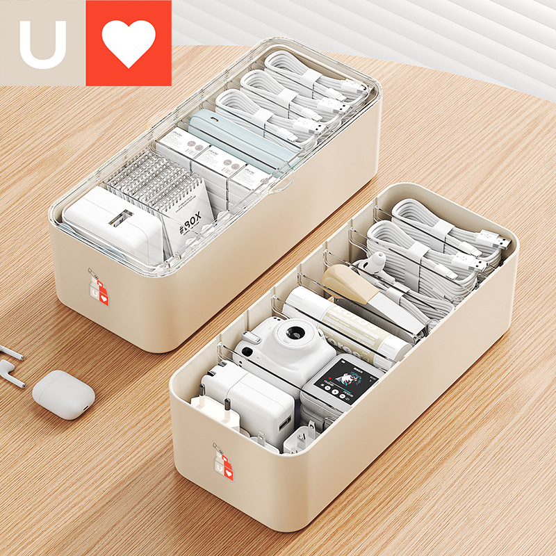 友耐数据线收纳盒家用手机充电器分格收纳神器桌面电源线整理盒