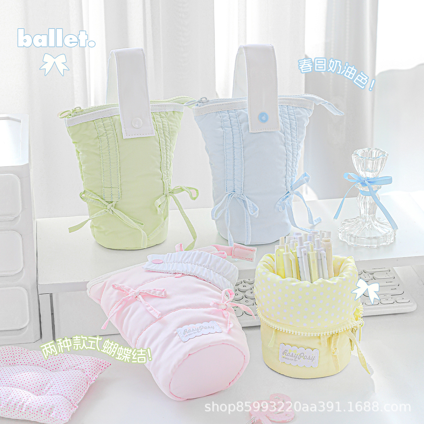 RosyPosy柔设 Milky ballet竖版笔袋蝴蝶结杜邦棉芭蕾笔筒多功能