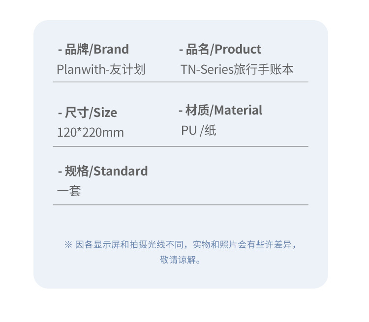 Planwith TNシリーズ トラベルノート スタンダードPUカバー 大学生旅行日記