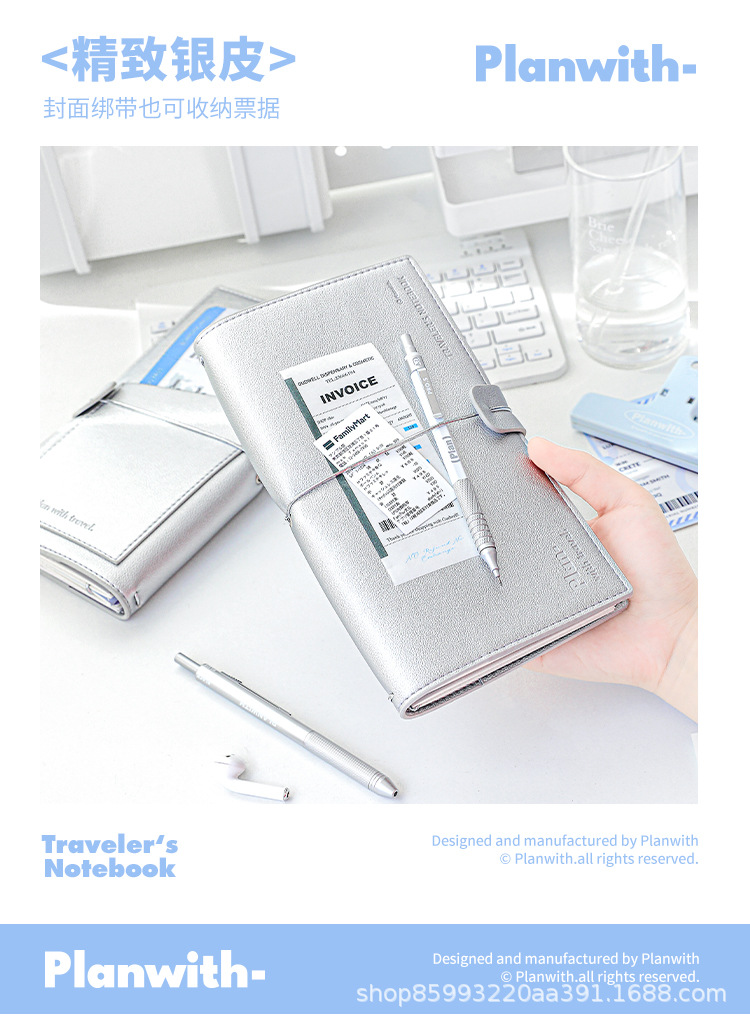 Planwith フレンドプラン ソフトレザートラベルノート 絶妙な小さなシルバーレザー デイリーレコード トラベルノート