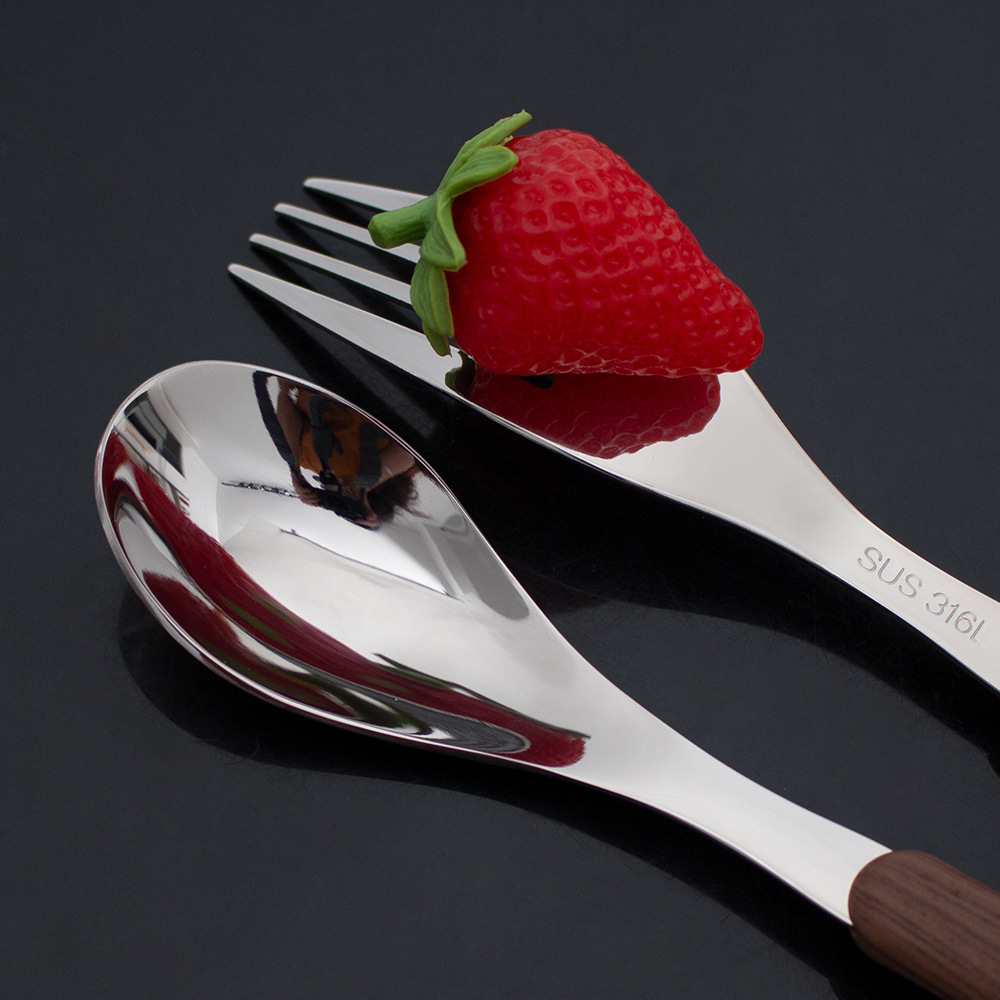 卸売410ステンレス鋼ラウンドスプーン家庭用フルーツデザートスプーンフォーク一体成形ナイフフォークスプーン