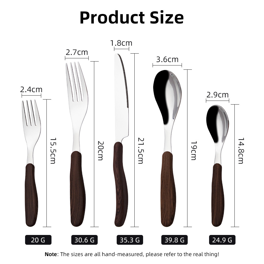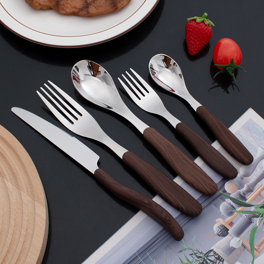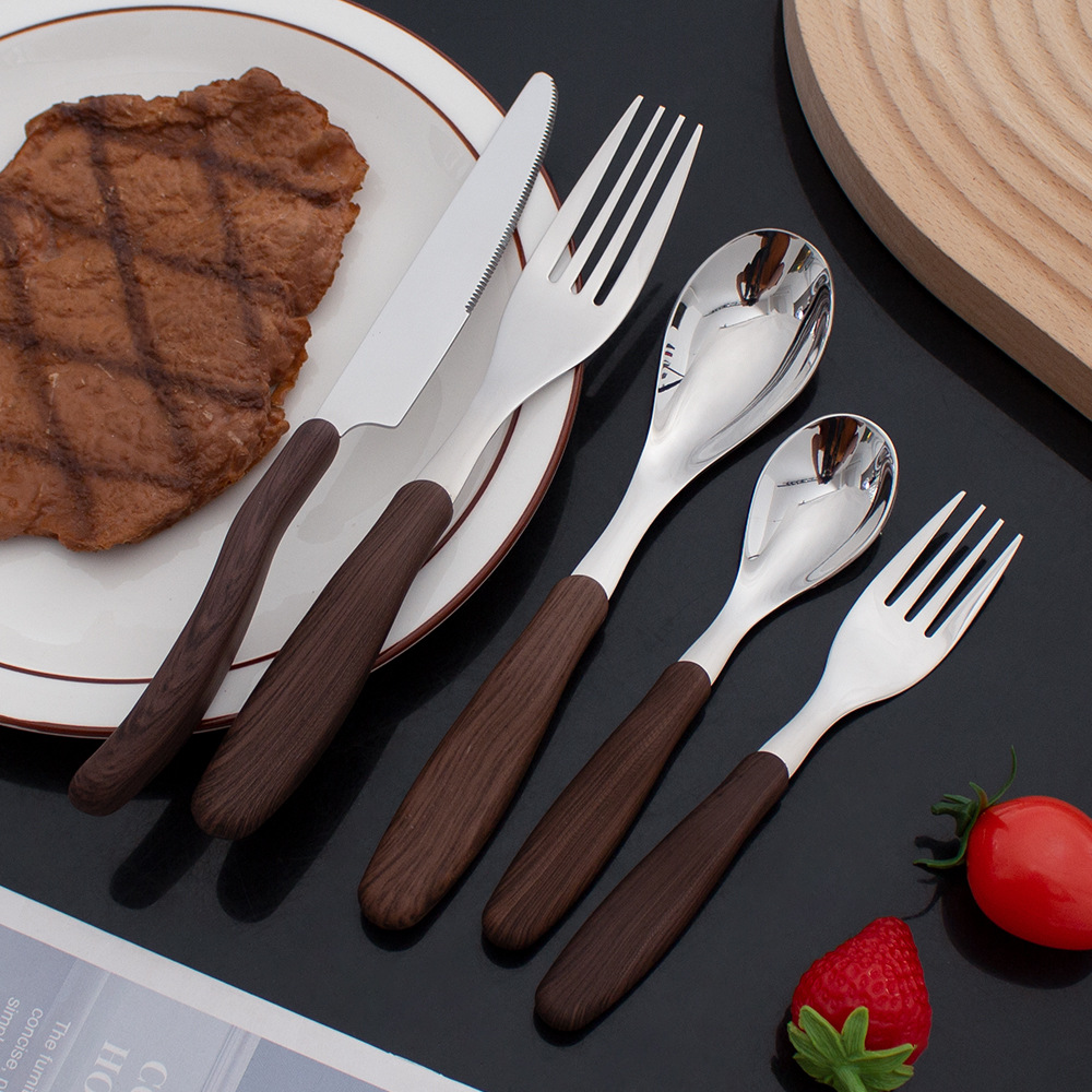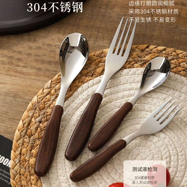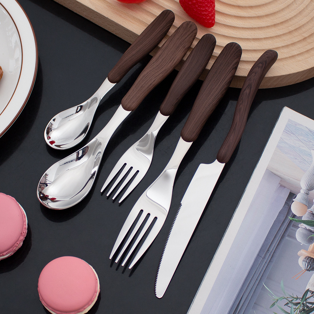 夹柄仿木纹刀叉勺餐具 304不锈钢餐刀勺子叉子餐厅儿童宝宝甜品勺