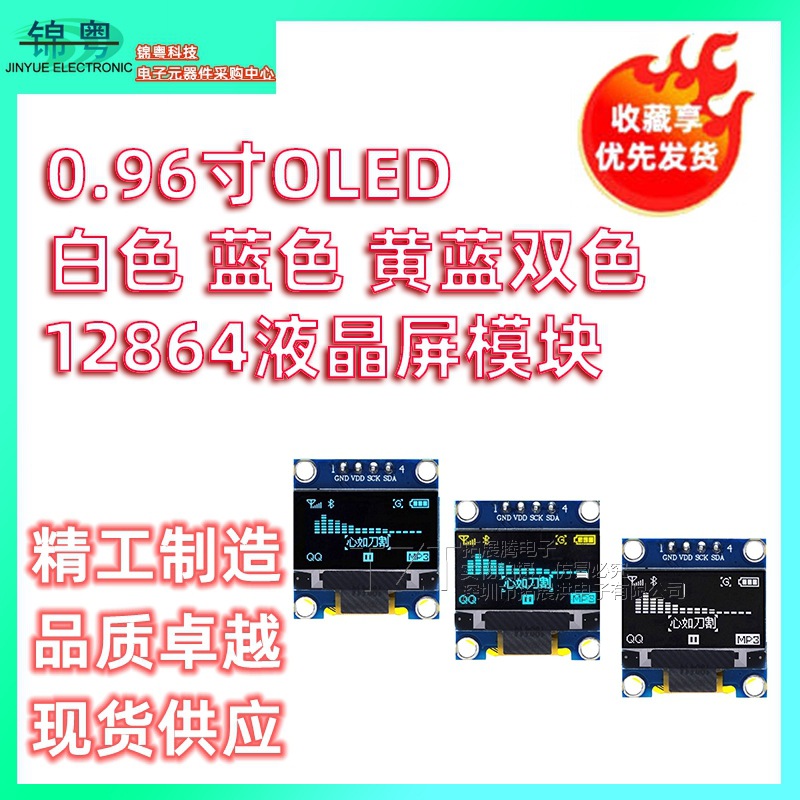 0.96inch OLED 白色/青色/黄青二色 12864 LCD ディスプレイモジュール I2C IIC インターフェース