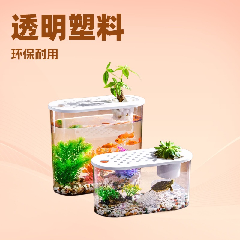 プラスチック製のバルコニー景観用小型生態水槽、卓上水槽、亀水槽、魚水槽、家庭用楕円形水槽、ペット水槽