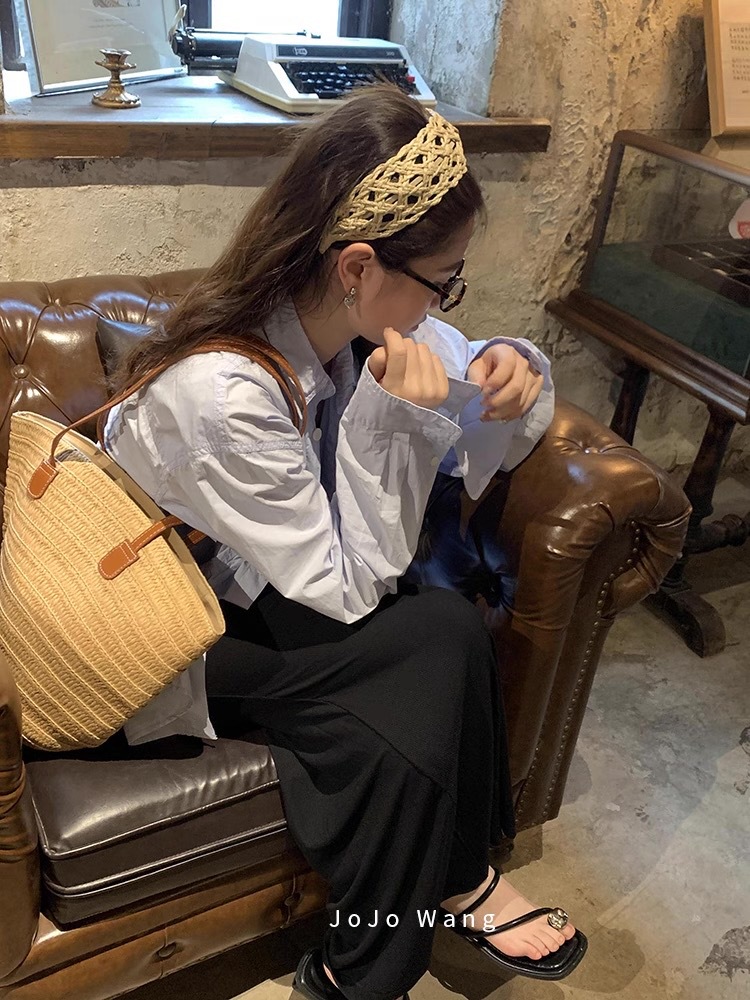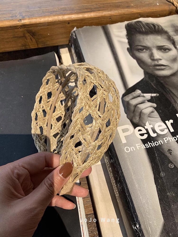 都市休暇〜女性の洗顔用ラフィア中空ヘッドバンド、非常にシンプルなヘアピン、韓国の高級ヘッドバンド、ヘアアクセサリー、ヘッドギア