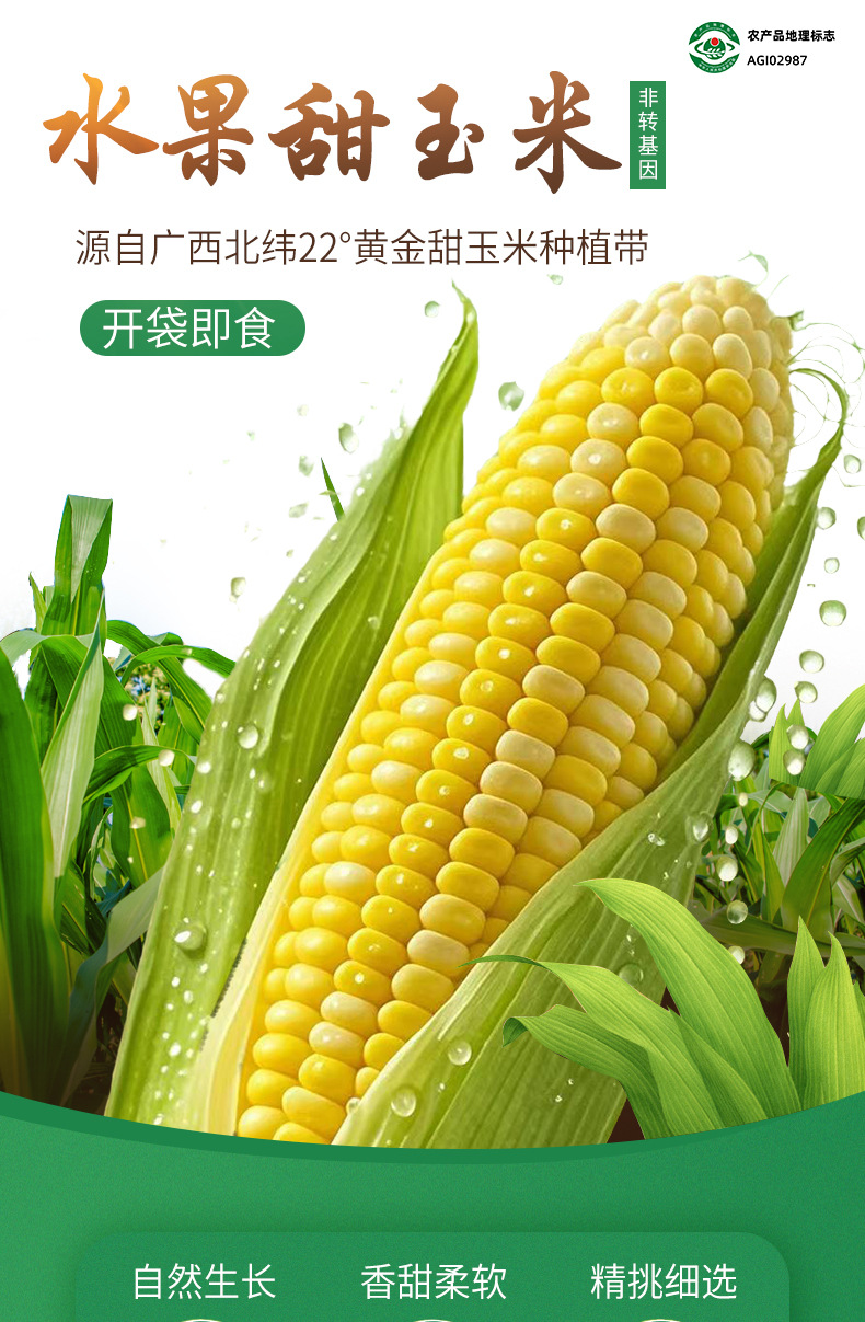 広西チワン族自治区横県産の甘いトウモロコシ、調理不要のフルボックス、新鮮なフルーツトウモロコシ、学生の食事代わりに、真空包装、卸売、ランドマーク商品