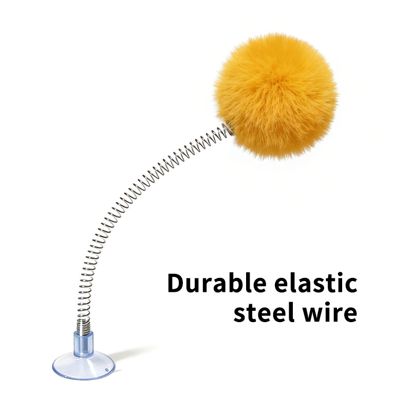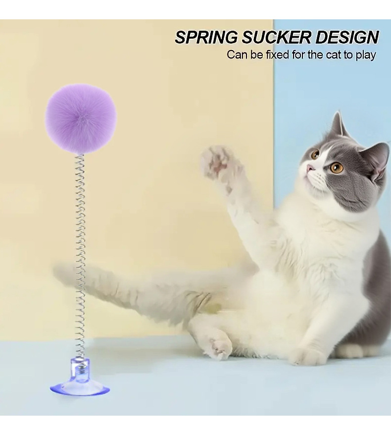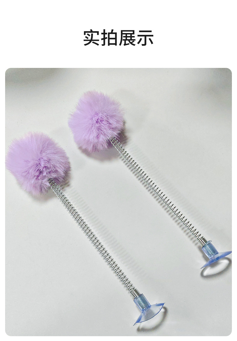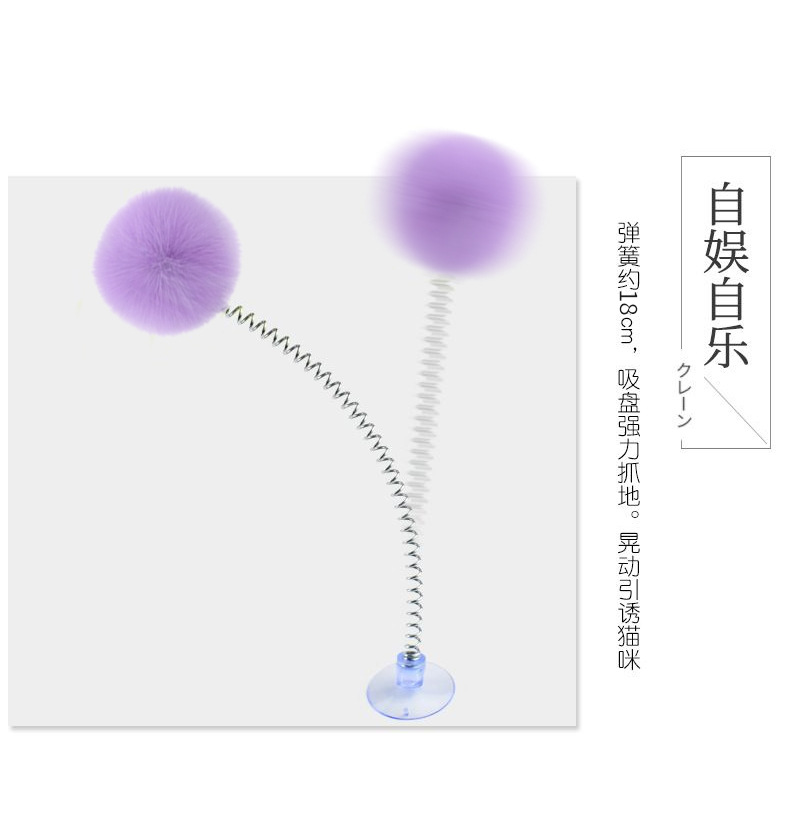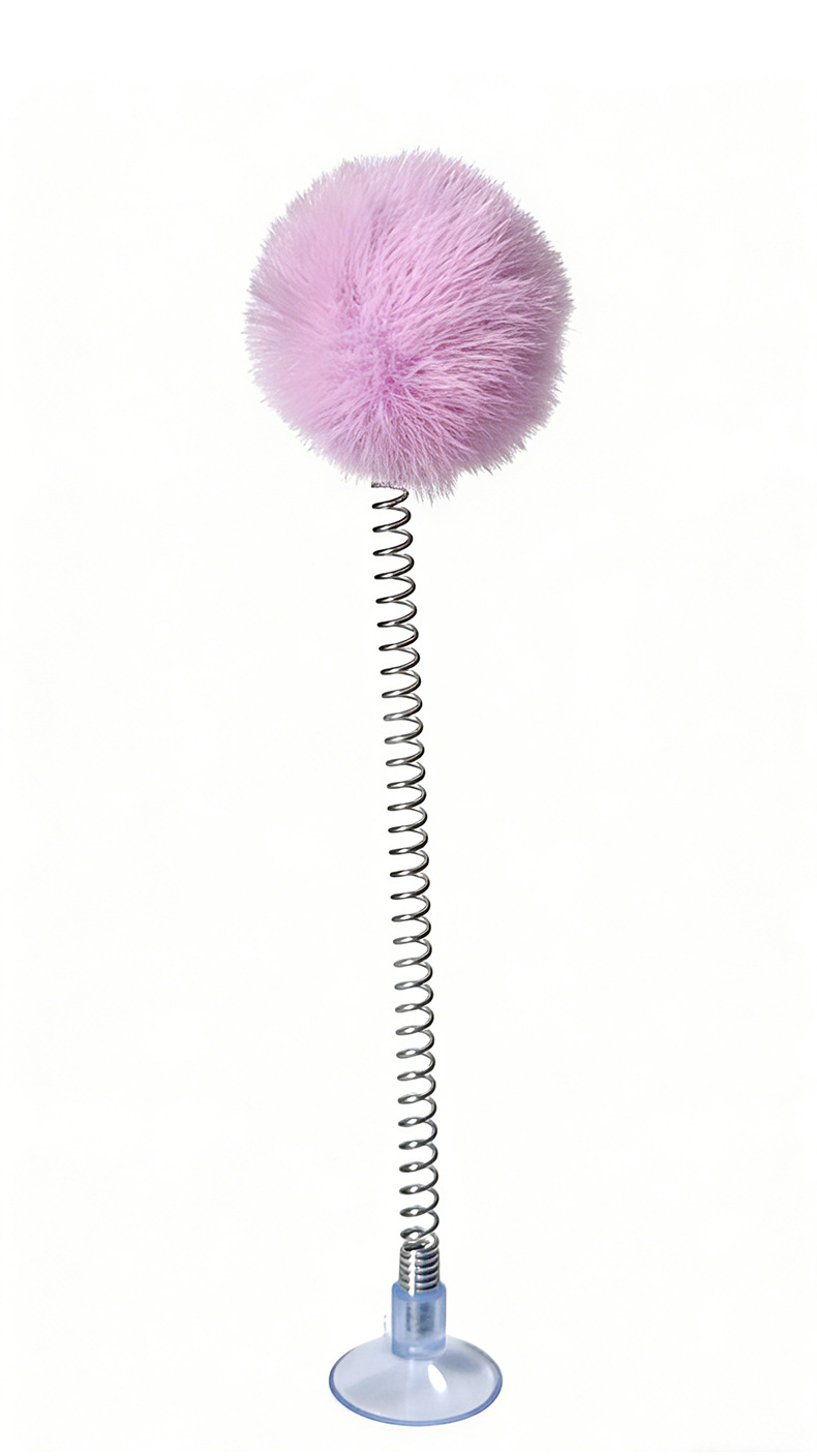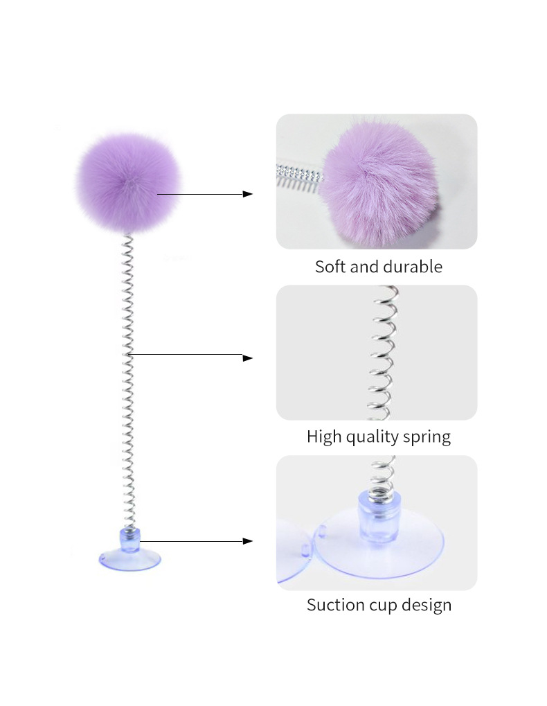 紫色の毛玉スプリング吸盤おもちゃ,白い毛玉スプリング吸盤おもちゃ,黒いポンポン付きスプリング吸盤おもちゃ,グレーのポンポン付きスプリング吸盤おもちゃ,明るい黄色の毛玉スプリング吸盤おもちゃ,茶色の毛玉スプリング吸盤おもちゃ