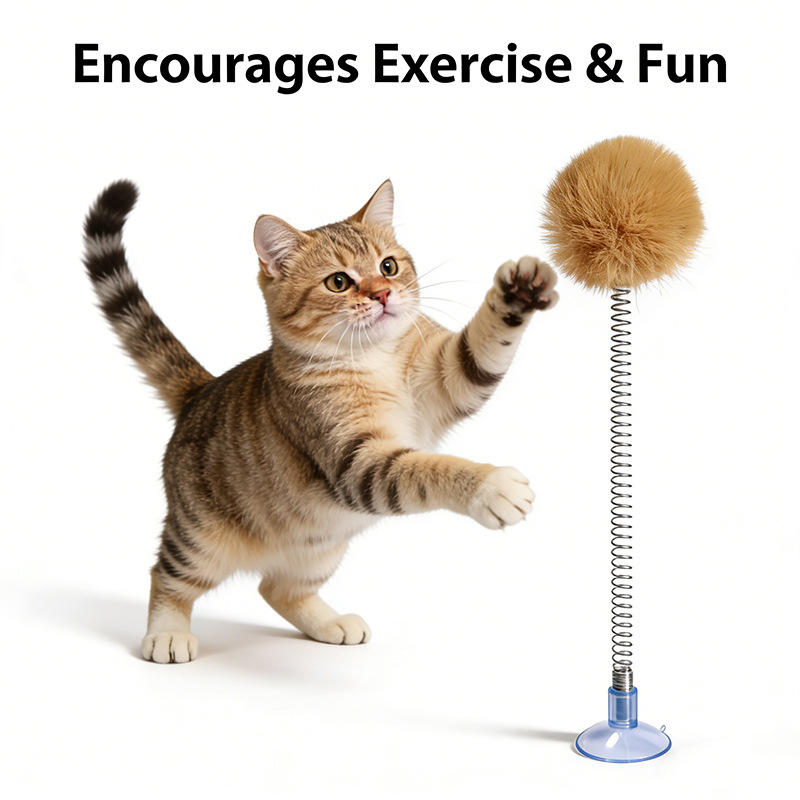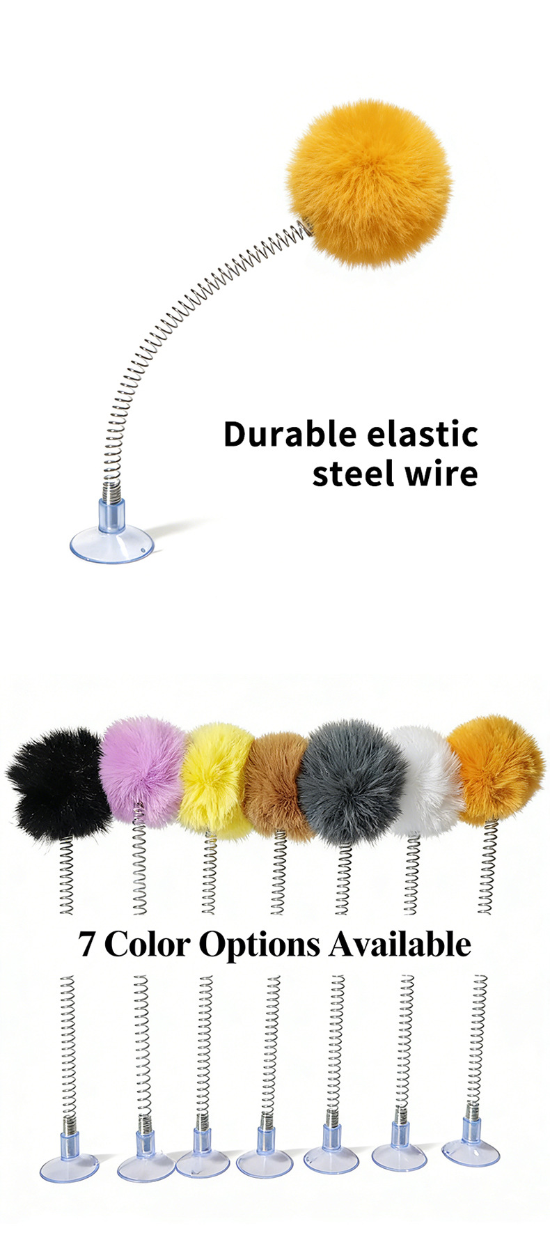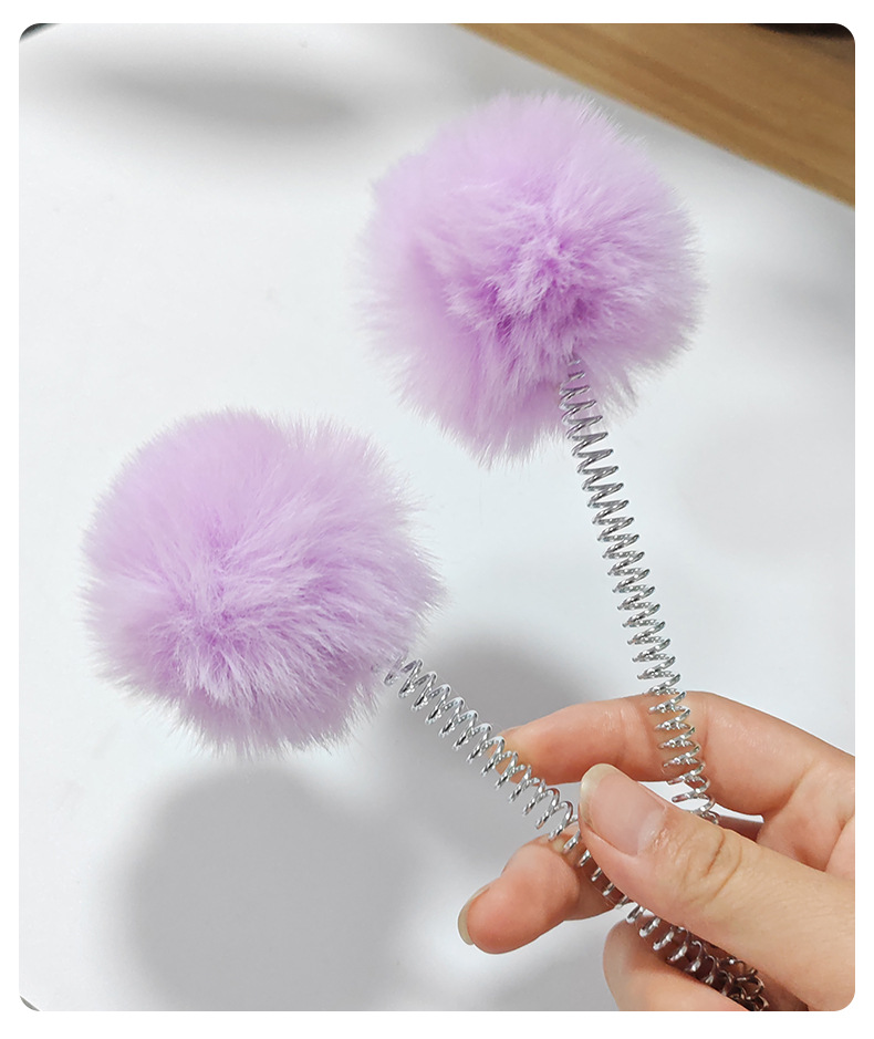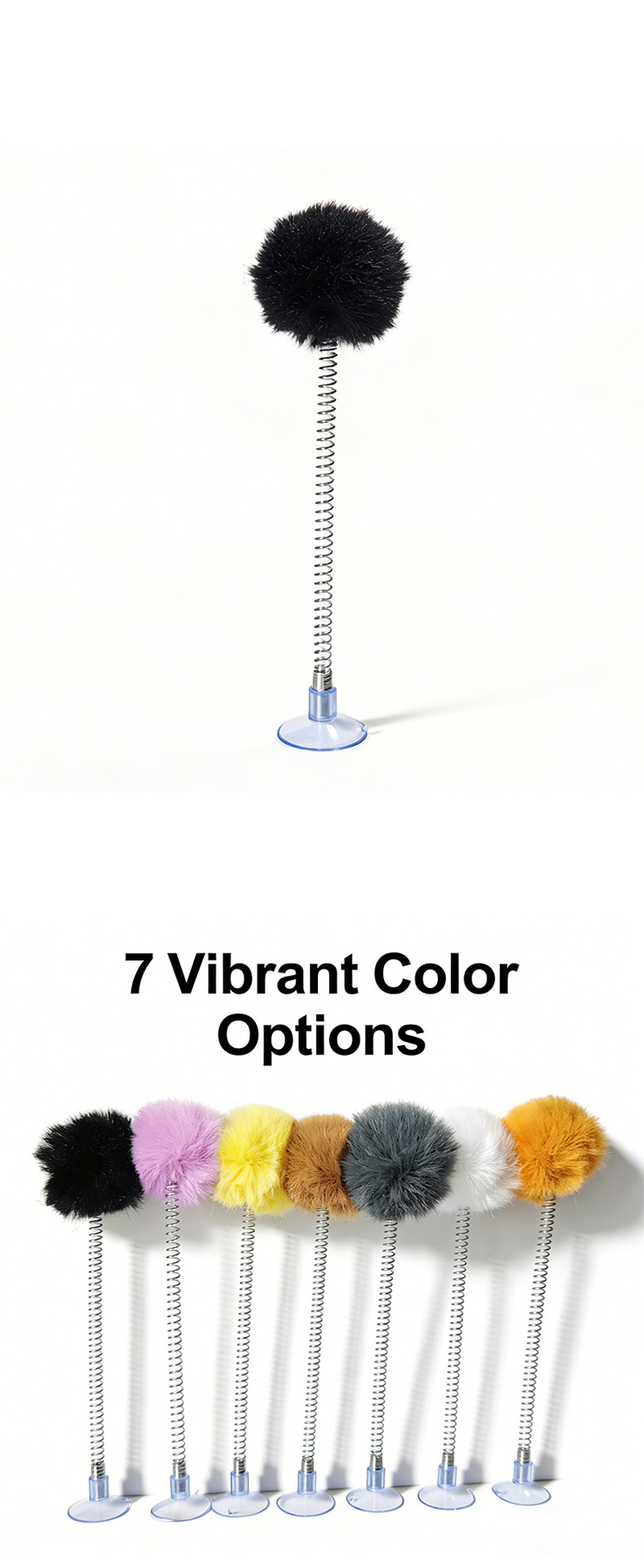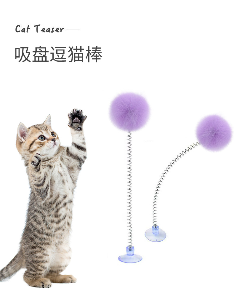 紫色の毛玉スプリング吸盤おもちゃ,白い毛玉スプリング吸盤おもちゃ,黒いポンポン付きスプリング吸盤おもちゃ,グレーのポンポン付きスプリング吸盤おもちゃ,明るい黄色の毛玉スプリング吸盤おもちゃ,茶色の毛玉スプリング吸盤おもちゃ