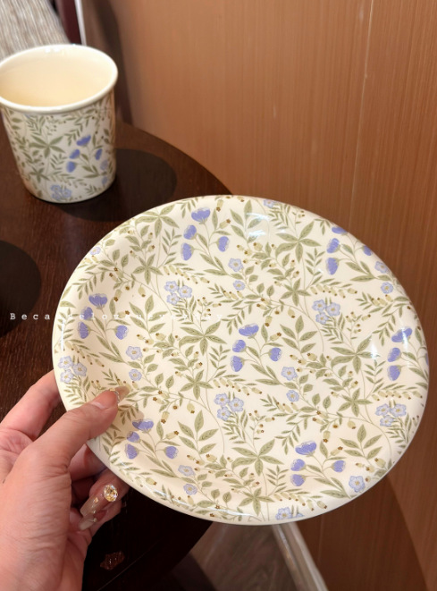 日韓風復古小藍花陶磁器食器茶碗料理皿スープ碗調味料皿家庭用レストランセット