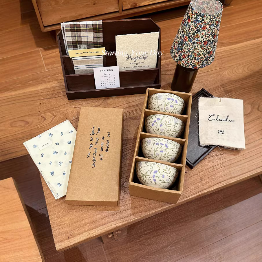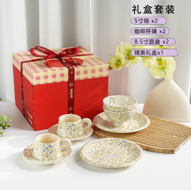 新款ins简约复古紫萝5寸高脚碗礼盒装送礼套装乔迁送礼套装
