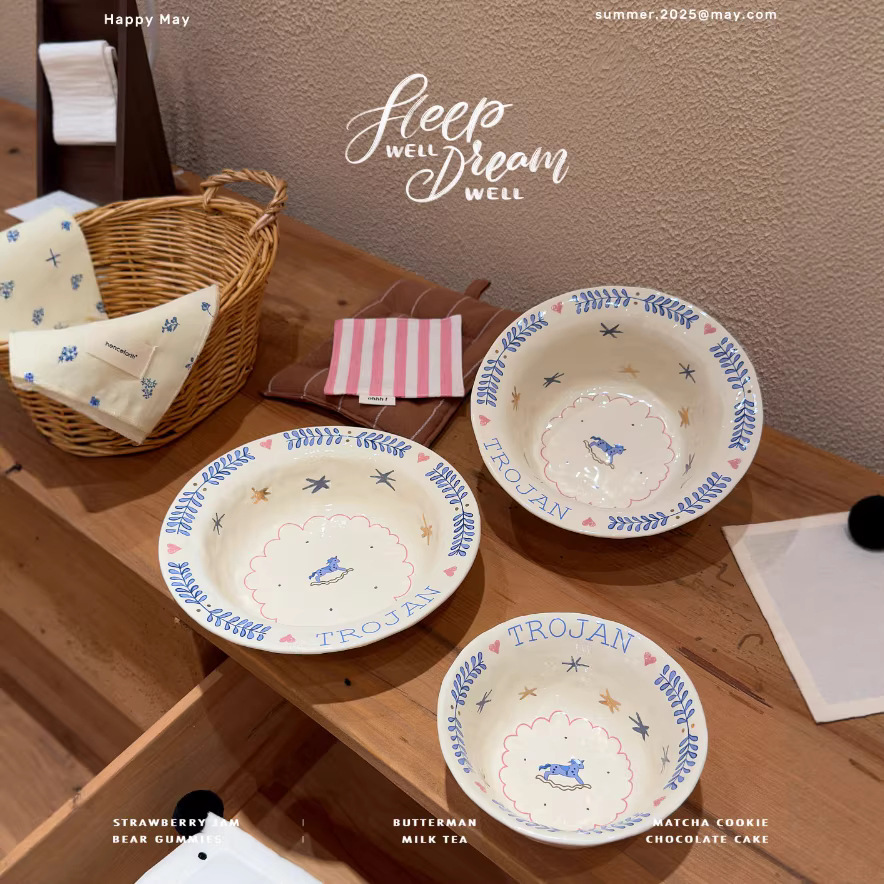 小清新ins简约云边小骑系列家用创意米饭碗面碗点心水果盘