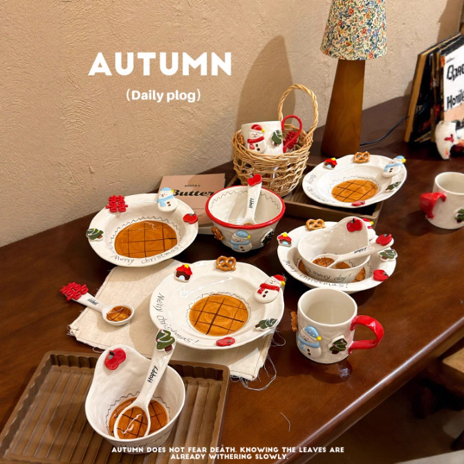 圣诞雪人系列ins高颜值圣诞盘子马克杯汤勺米饭碗