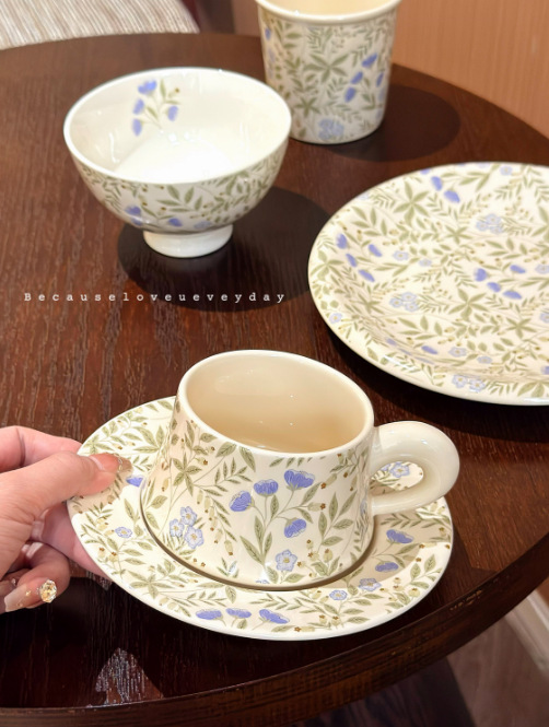 2025 新パープルシリーズコーヒーブレックファストカップとソーサーミルクハンドカップスナックプレート家庭用ライスボウル