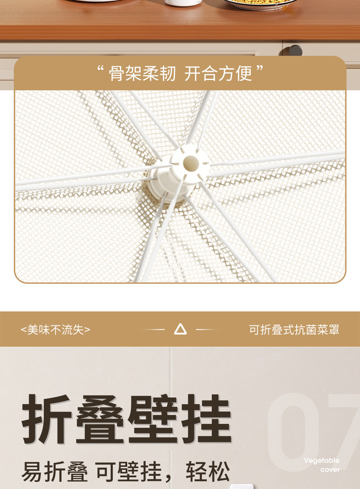 抗菌菜盖罩新款家用饭菜遮尘高级可折叠餐桌防虫网罩菜罩神器