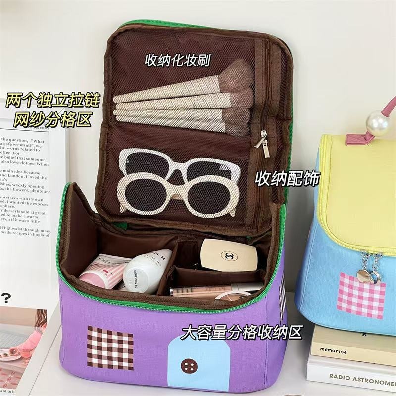 【多巴胺小房子化妆包女大容量分区手提2025新款防水旅行便携收纳