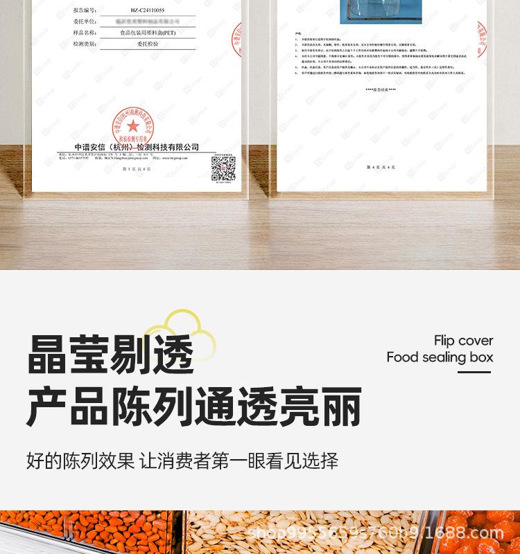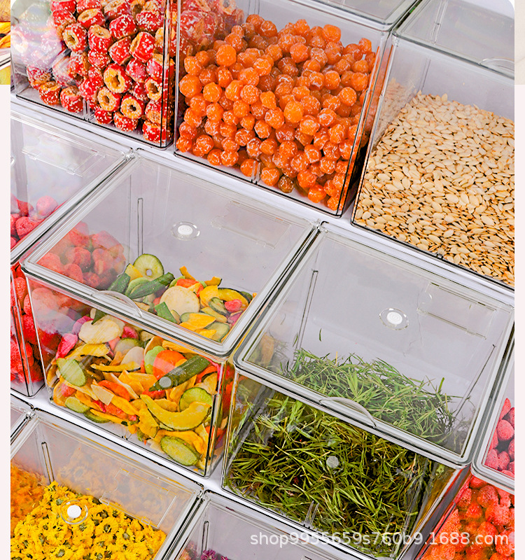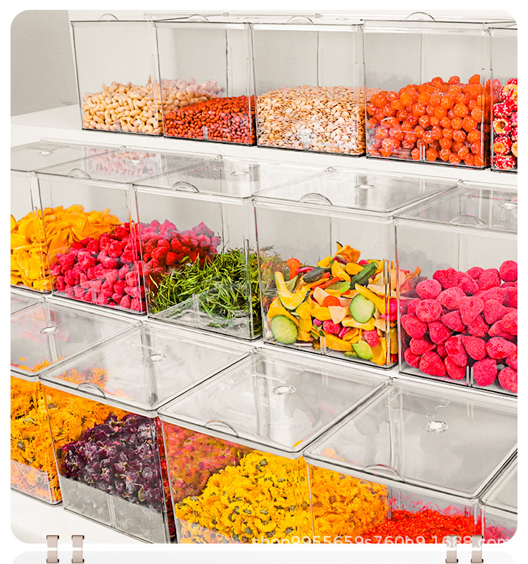 超市透明展示盒干果炒货散装防潮零食花生瓜子带盖食品商用收纳盒