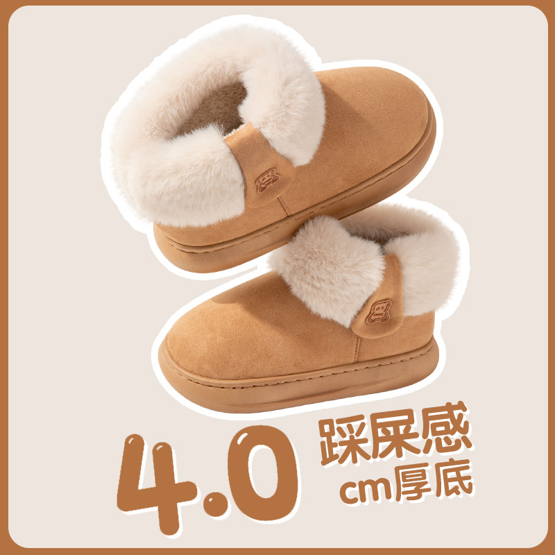 2025棉鞋女冬季外穿中帮靴厚底面包鞋麂皮保暖加绒加厚雪地靴