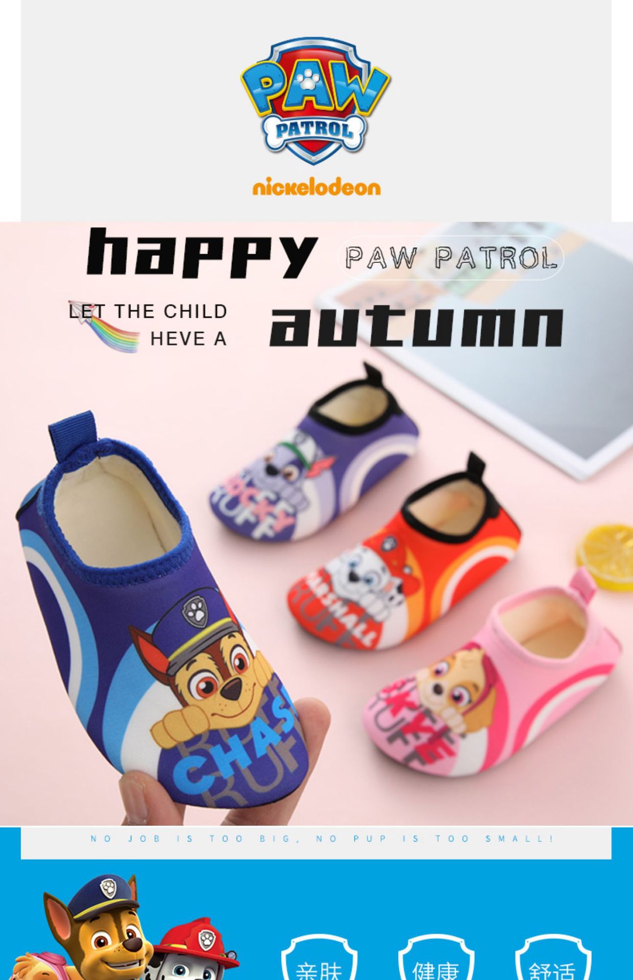 パウパトロールフロアソックス子供用秋と冬屋内ソフトソール滑り止めベビー幼児靴家庭用男性と女性の早期教育靴下と靴