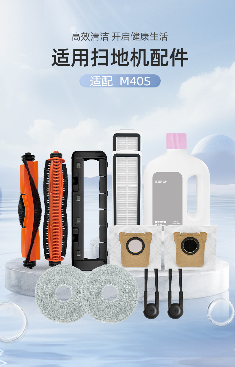 适配小米米家耗材m40s扫地机器人配件滚刷刷边刷过滤网抹布集尘袋