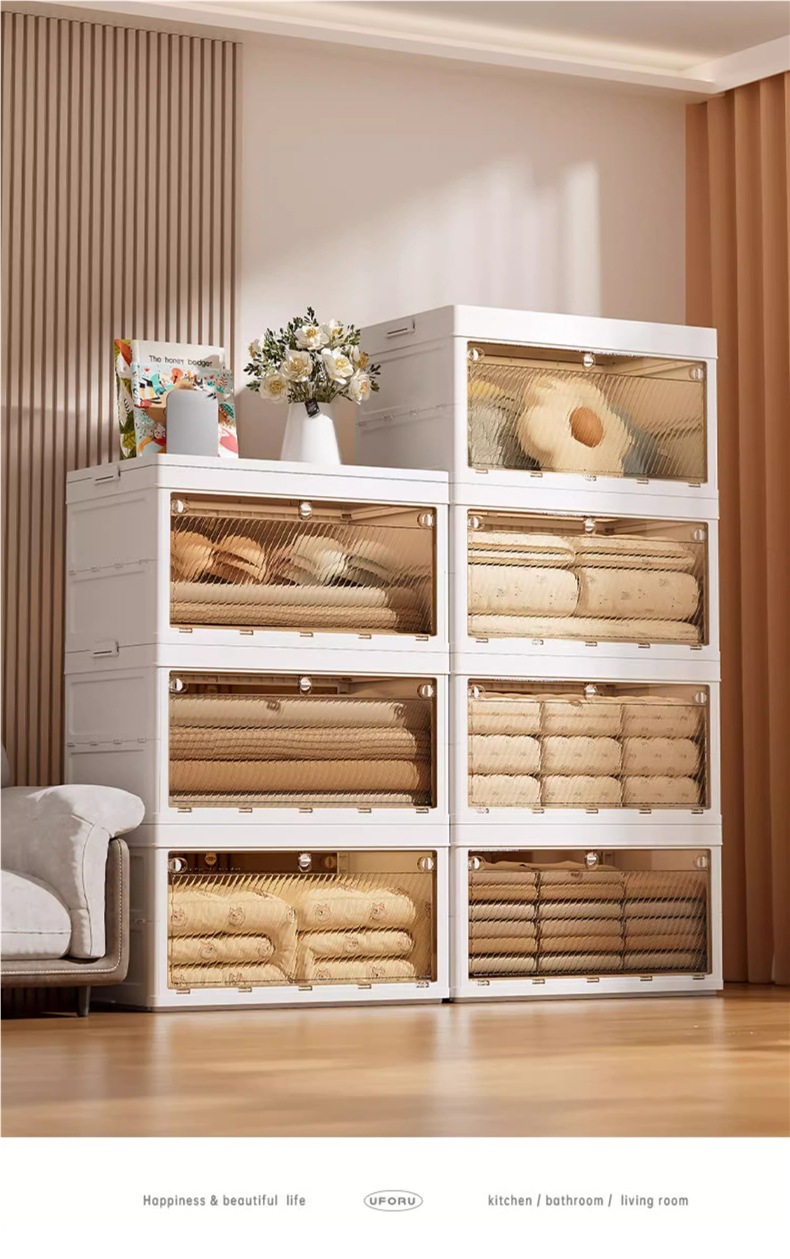 引っ張ると折り畳み収納キャビネット透明靴箱ロッカー衣類玩具整理収納ボックス