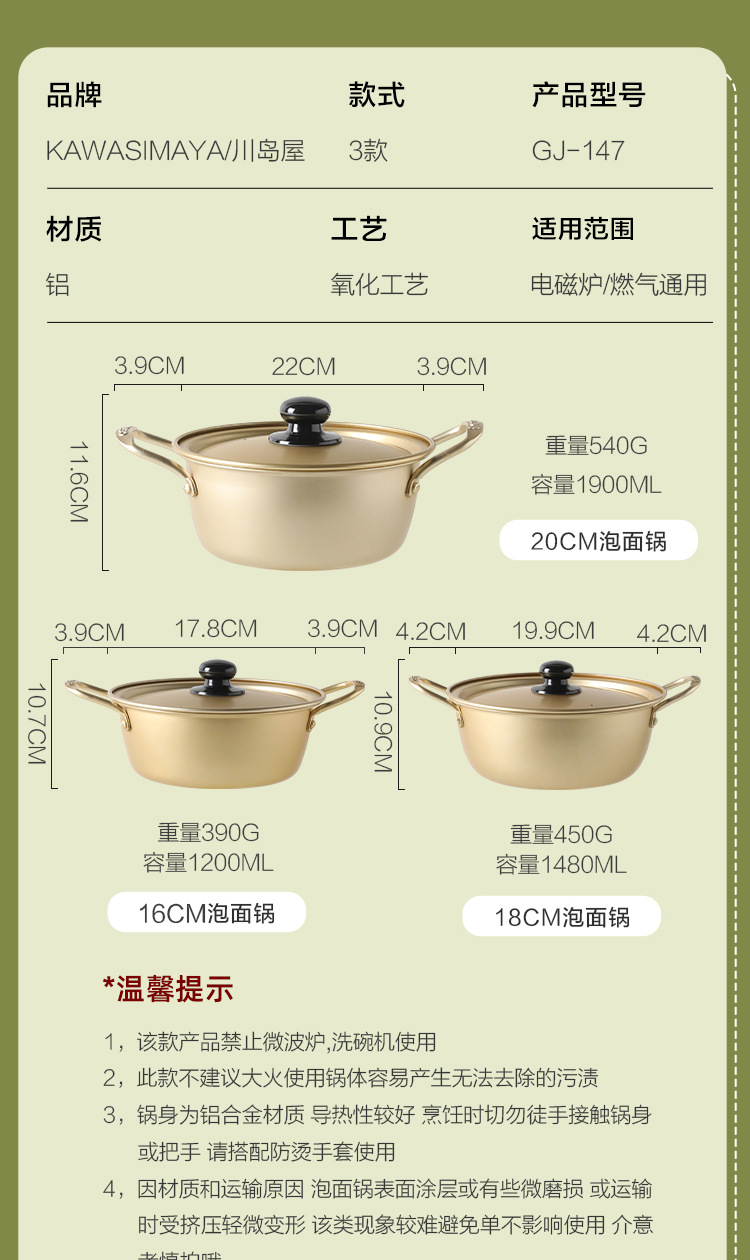 MTOY 韓国インスタントラーメンポット電磁調理器小型調理鍋両耳スープポット家庭用インスタントラーメンポット韓国ラーメンポット