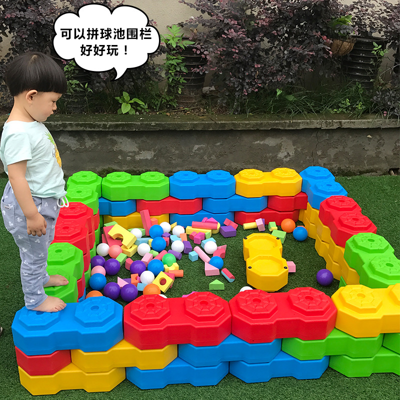 感統訓練八角形造景大粒構築積み木玩具児童プラスチック組立フェンス親子教具