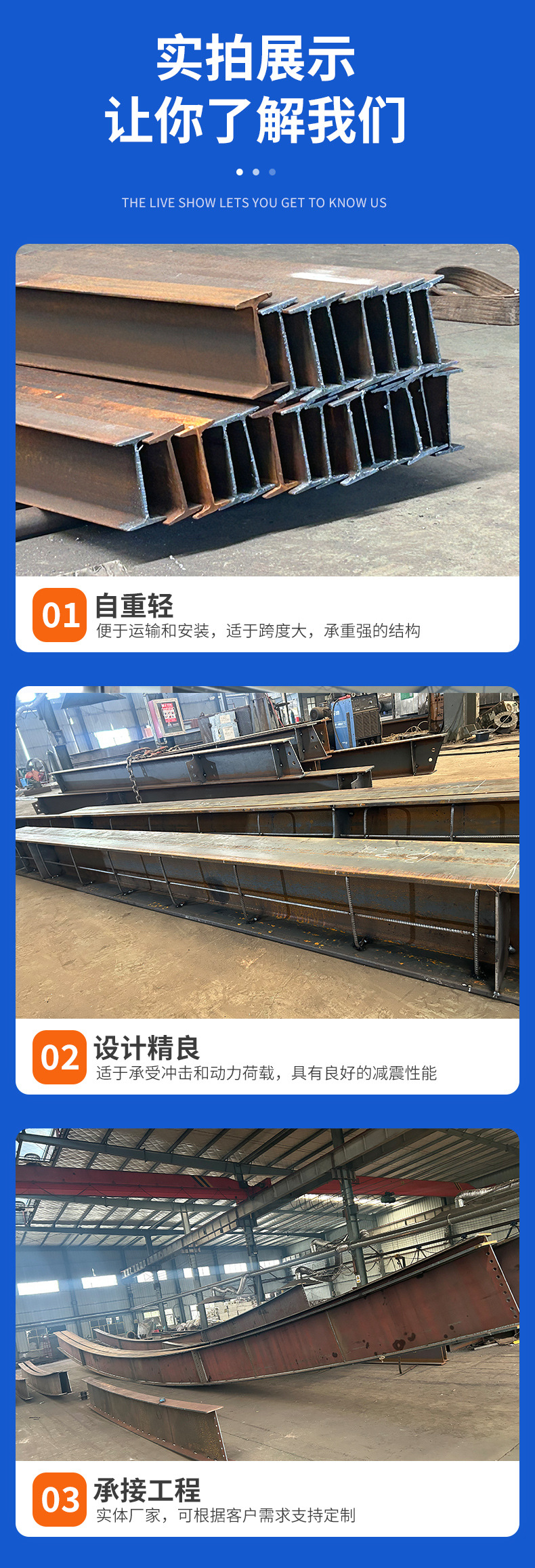 各種H型鋼加工、異形製作、鉄骨工場建設、鉄骨工事、鋼製梁骨組、各種仕様