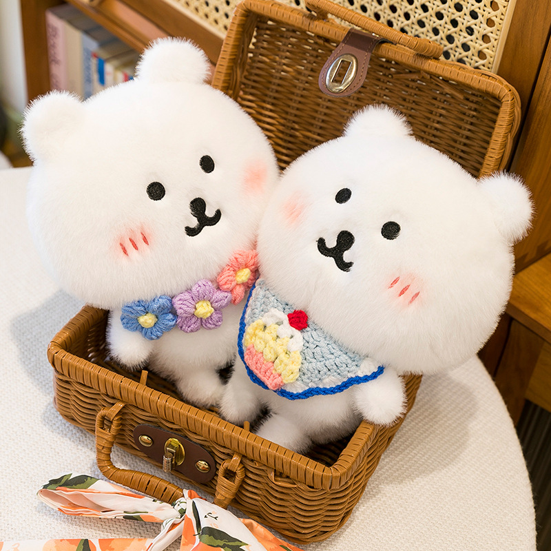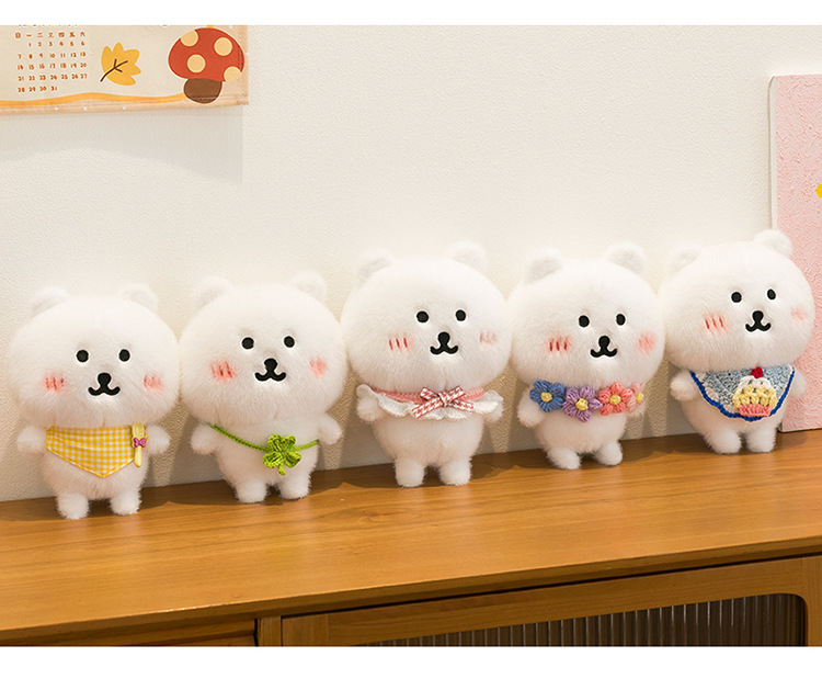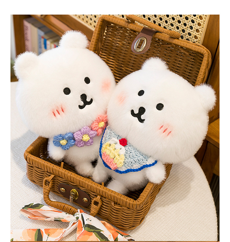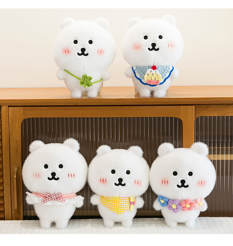 新しい自己嘲笑クマ人形ぬいぐるみよだれかけリトルホワイトベアドレスアップミニ人形ギフトキャッチマシン人形卸売