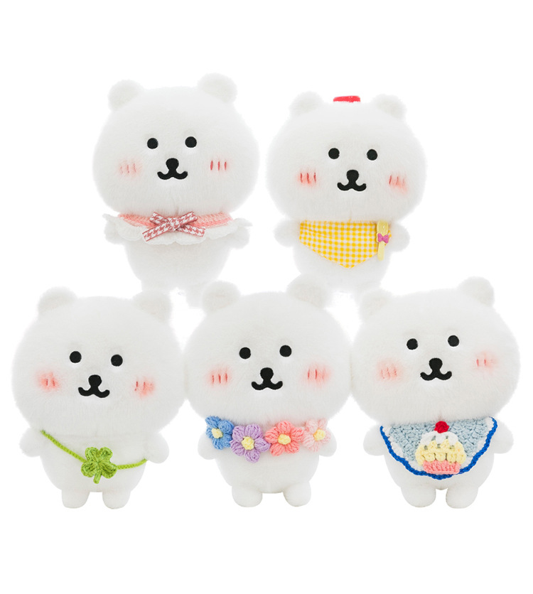 裸の小さな白いクマ,花アクセサリー白クマ,小さなケーキよだれかけ白クマ,リボンアクセサリー白クマ,よだれかけドライライススプーン小さな白クマ,四つ葉のクローバー アクセサリー 白クマ