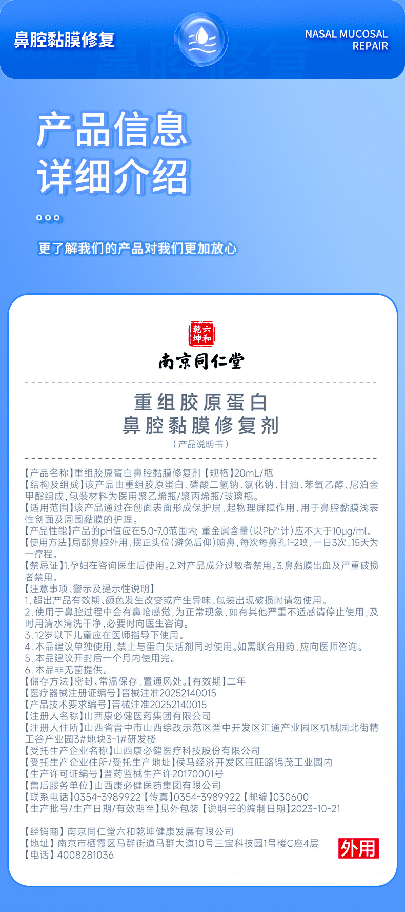 南京銅仁堂再構築コラーゲン鼻粘膜修復剤鼻ケアアレルギー性鼻炎スプレー