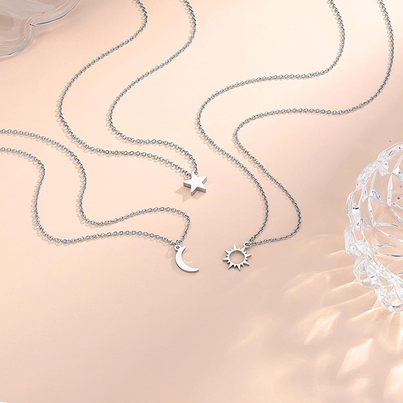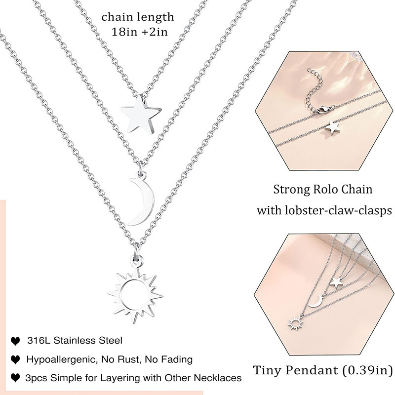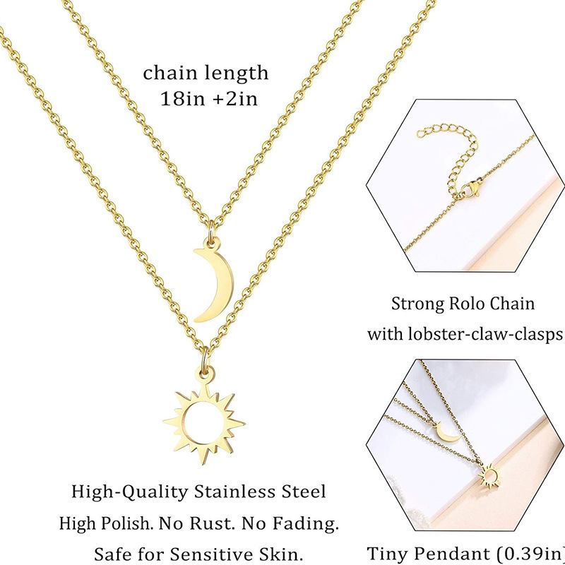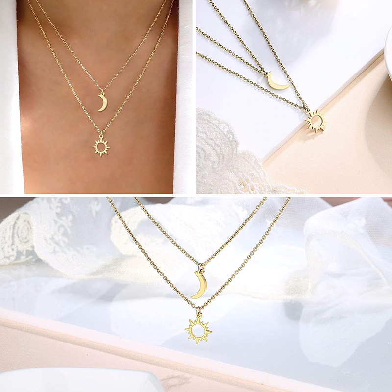 跨境太阳和月亮多层项链,适合女士精致颈链女孩女友礼物吊坠首饰