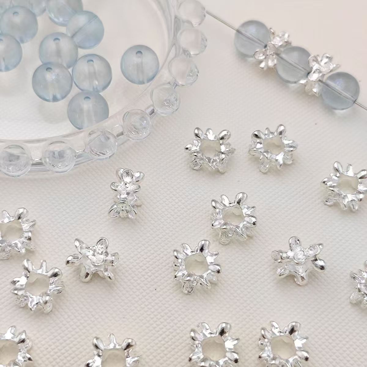 合金亮银立体花朵方块桶珠隔珠手链项链手串diy饰品配件手工材料