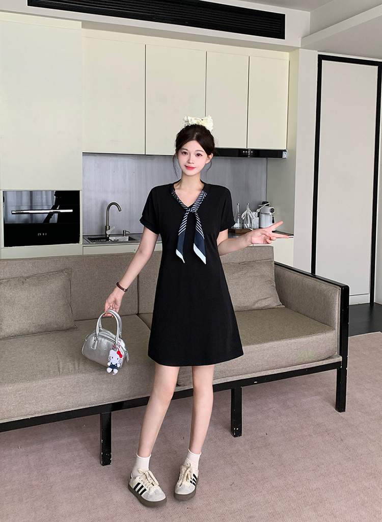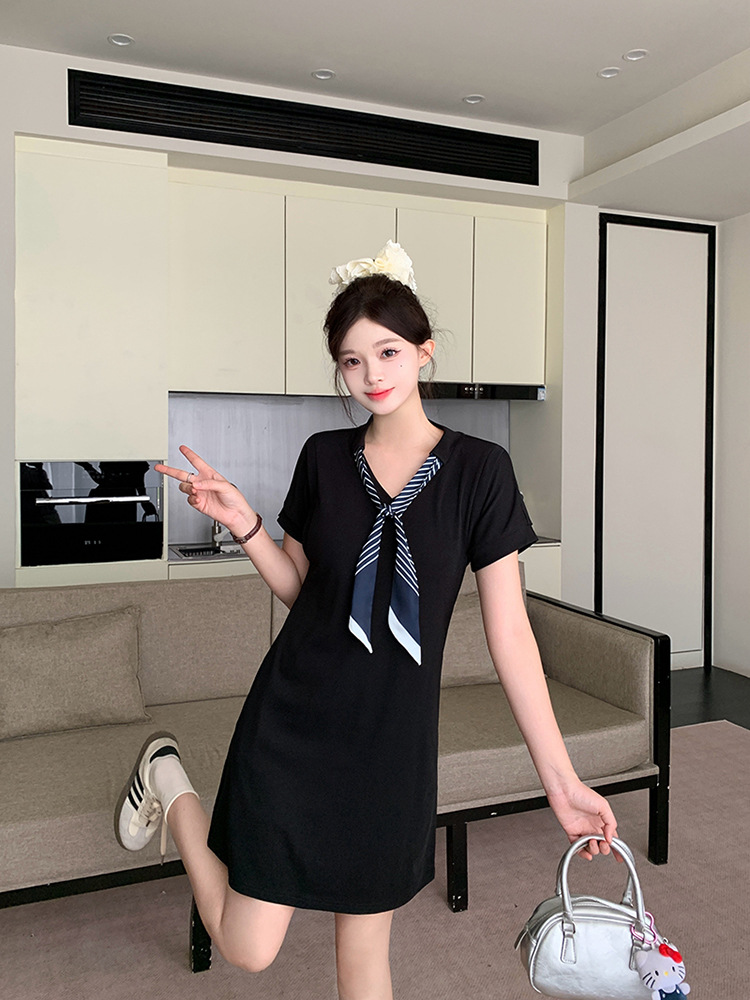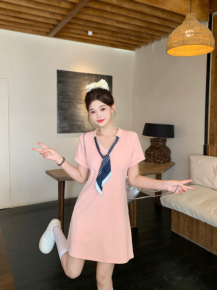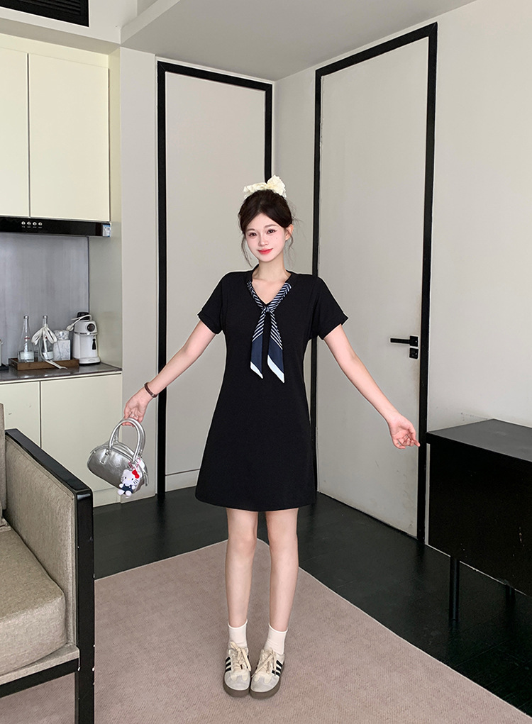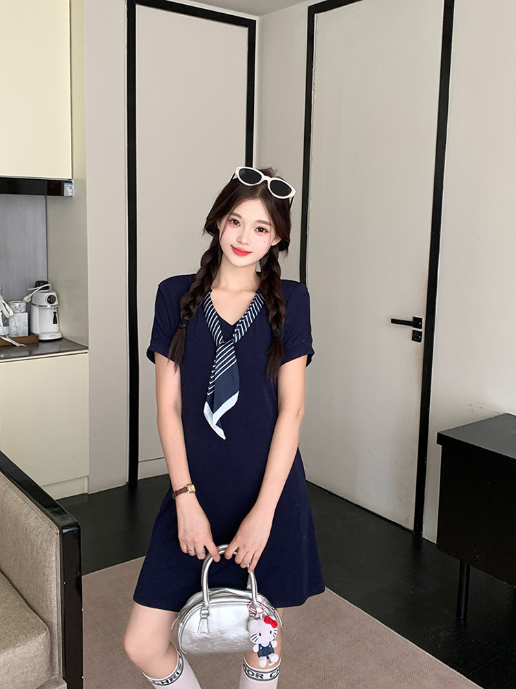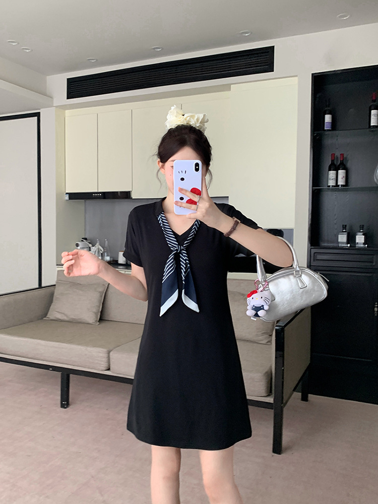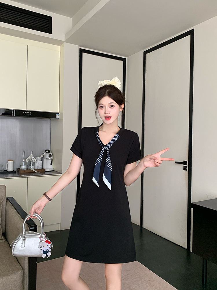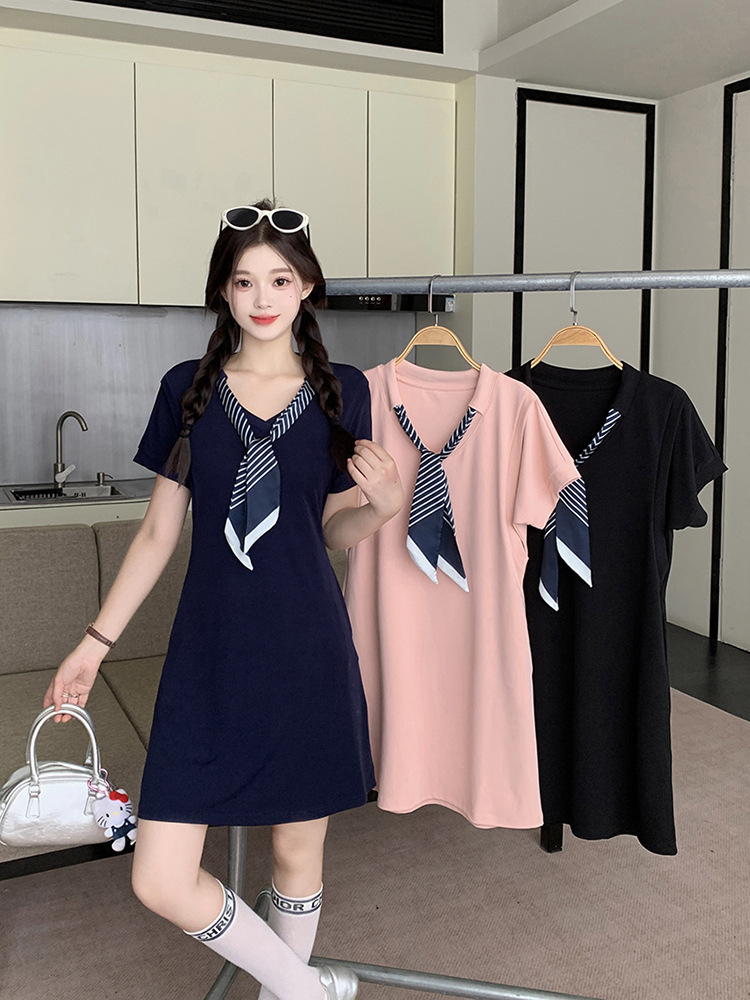 2025 夏の新スタイルファット mm プラスサイズフェミニンカジュアルリボンネクタイ痩身ドレス