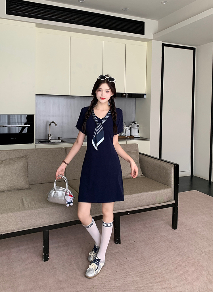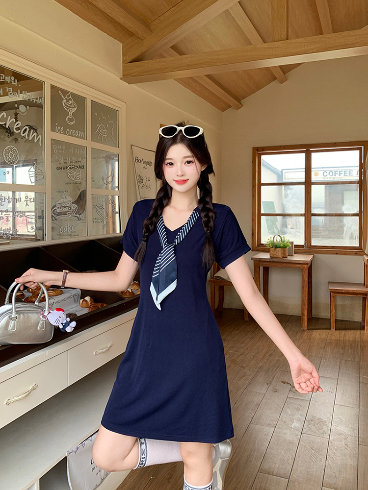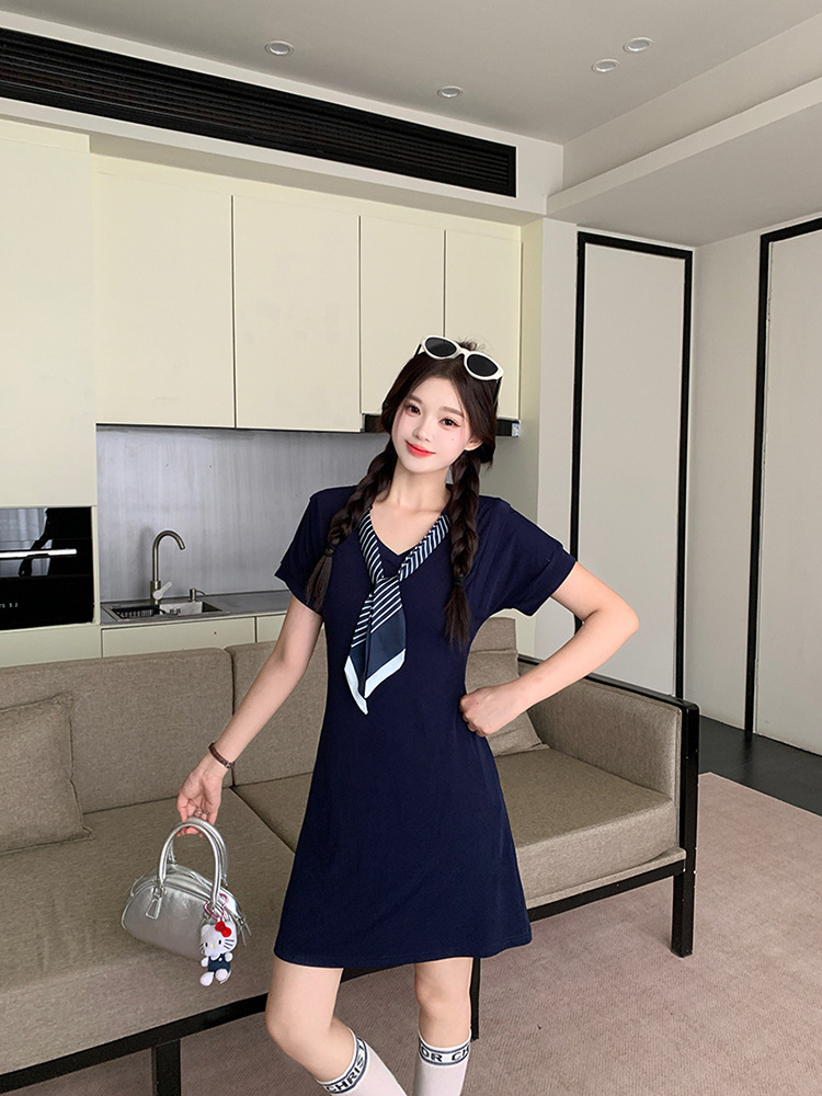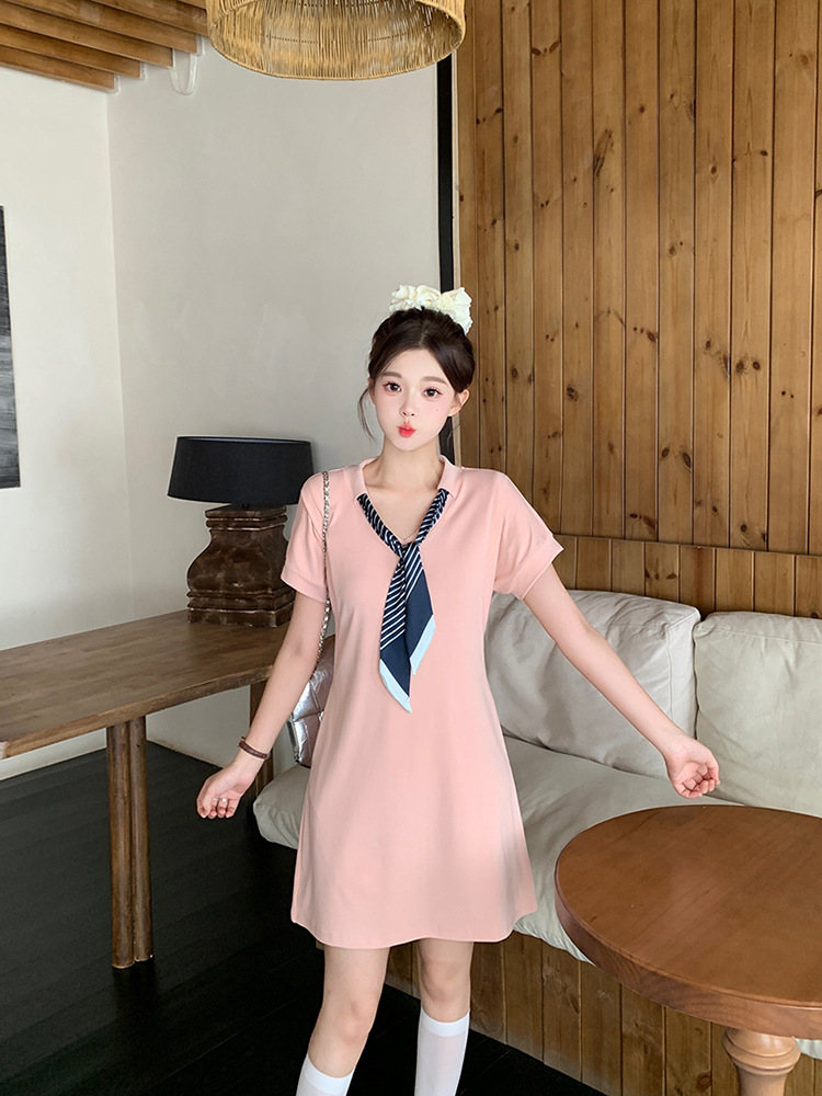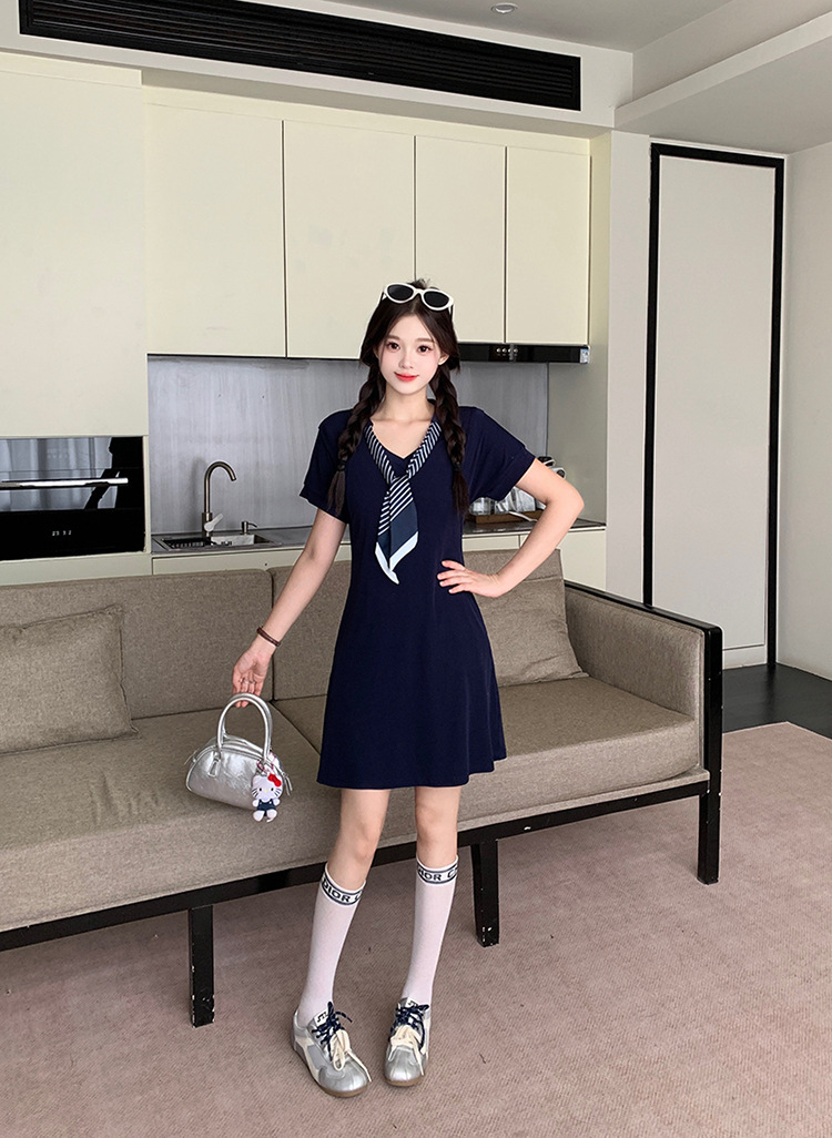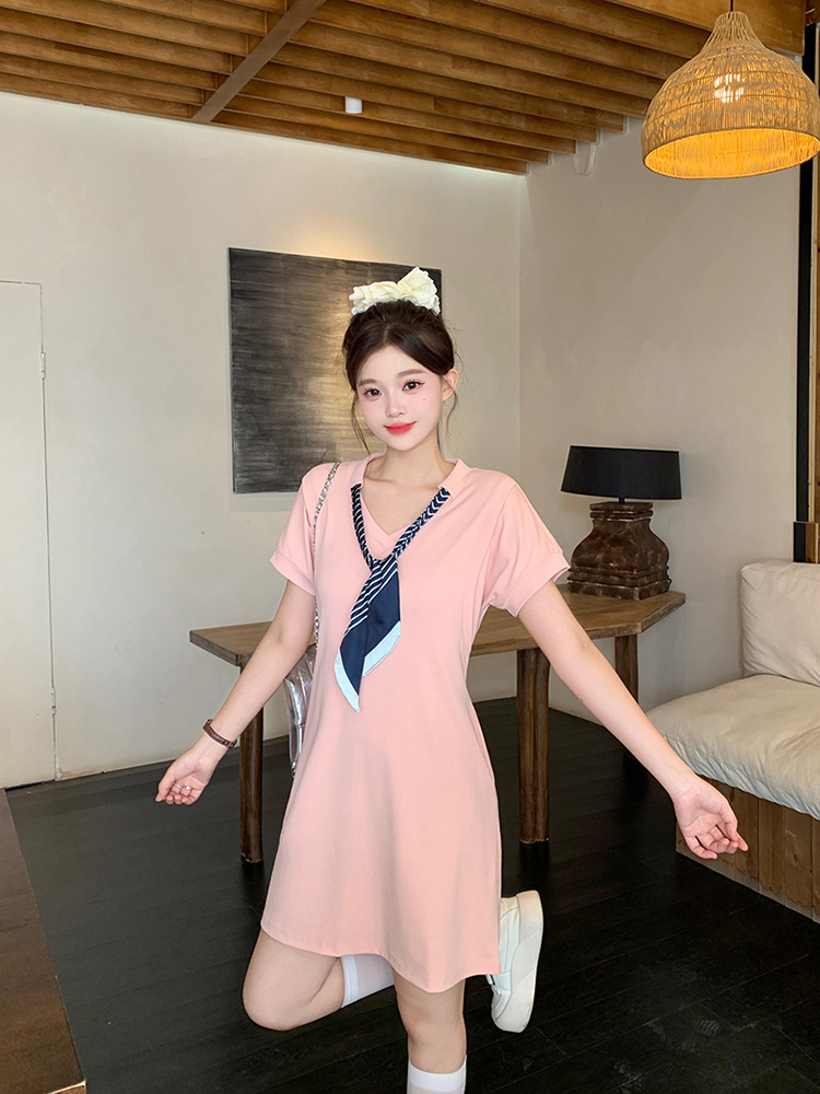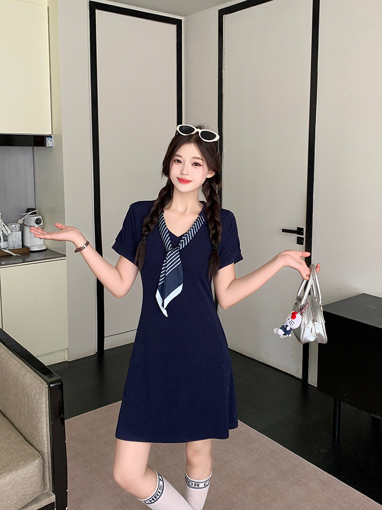 2025 夏の新スタイルファット mm プラスサイズフェミニンカジュアルリボンネクタイ痩身ドレス