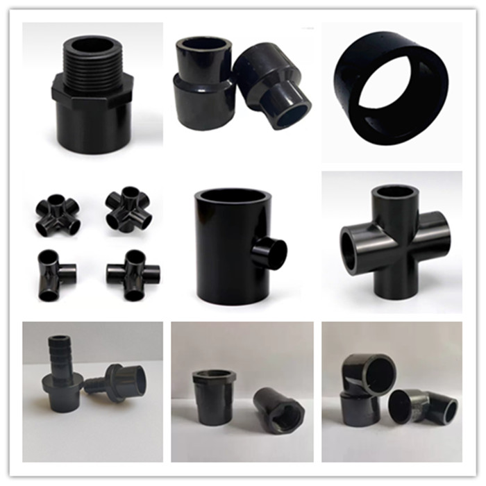 黒色PVCパイプ継手、立体4方向内外ネジ継手、エルボ、可変径三方継手、パゴダ継手、大小ヘッド