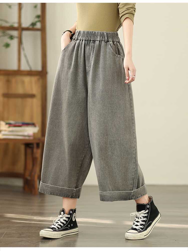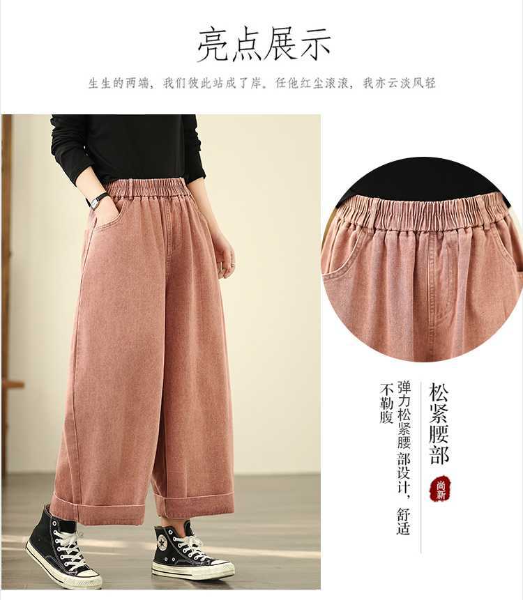実物写真夏の新スタイルウォッシュデニム無地ルーズ大きいサイズファットmmカジュアルカバーアップハーレムワイドレッグパンツ