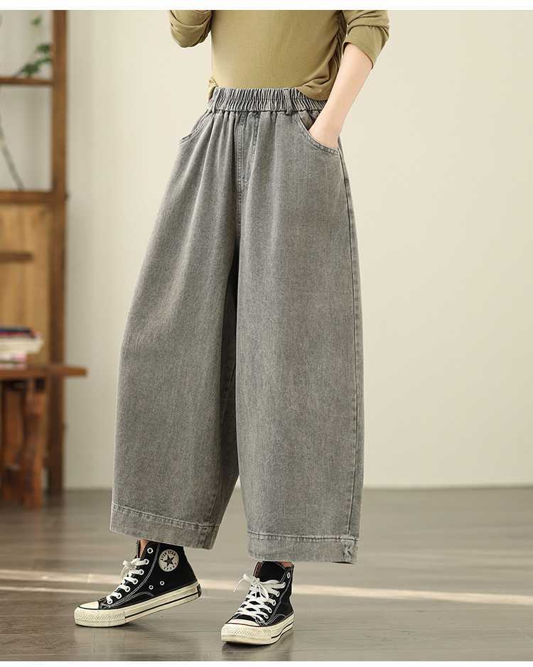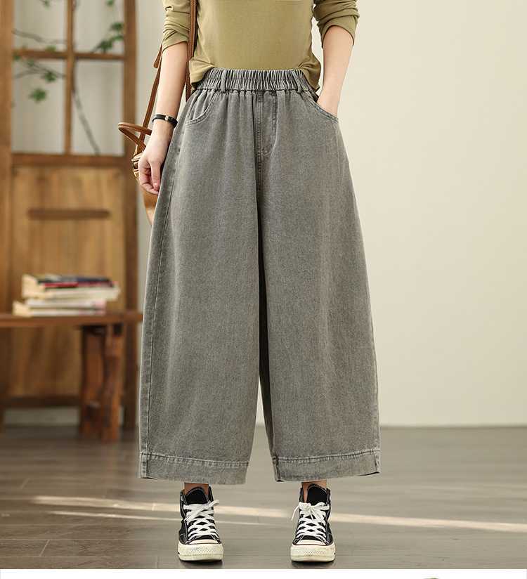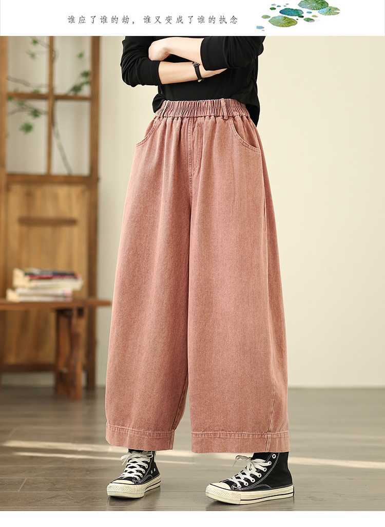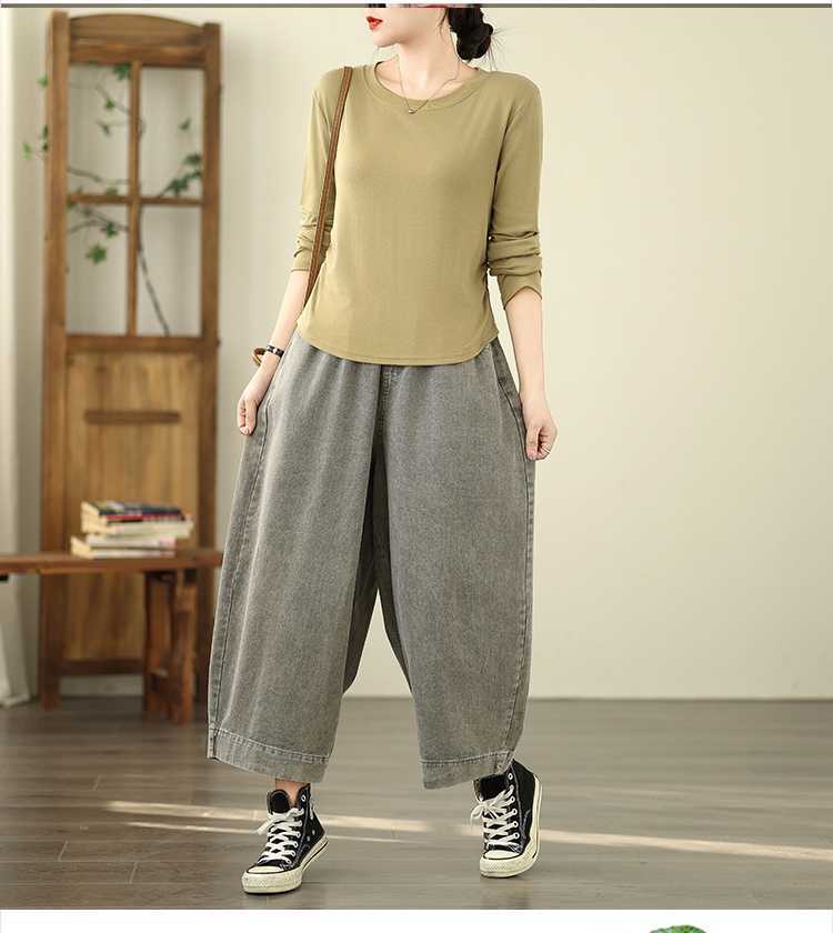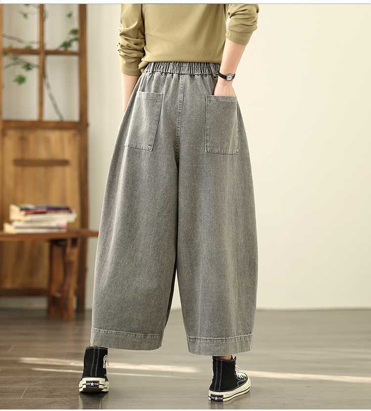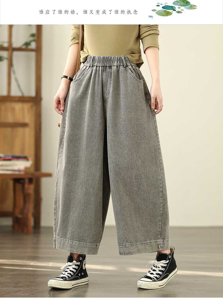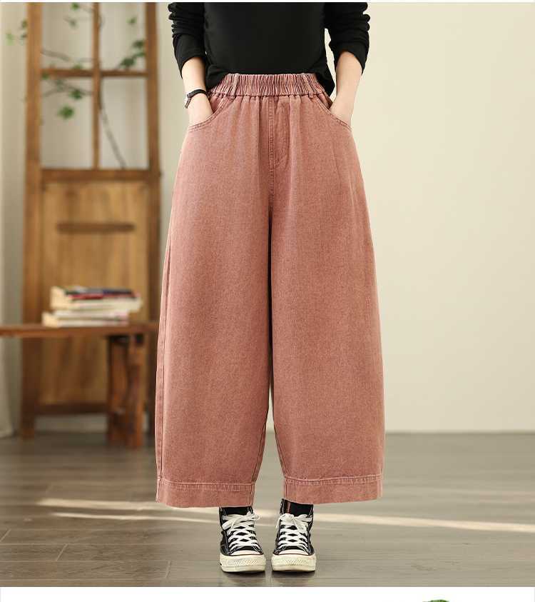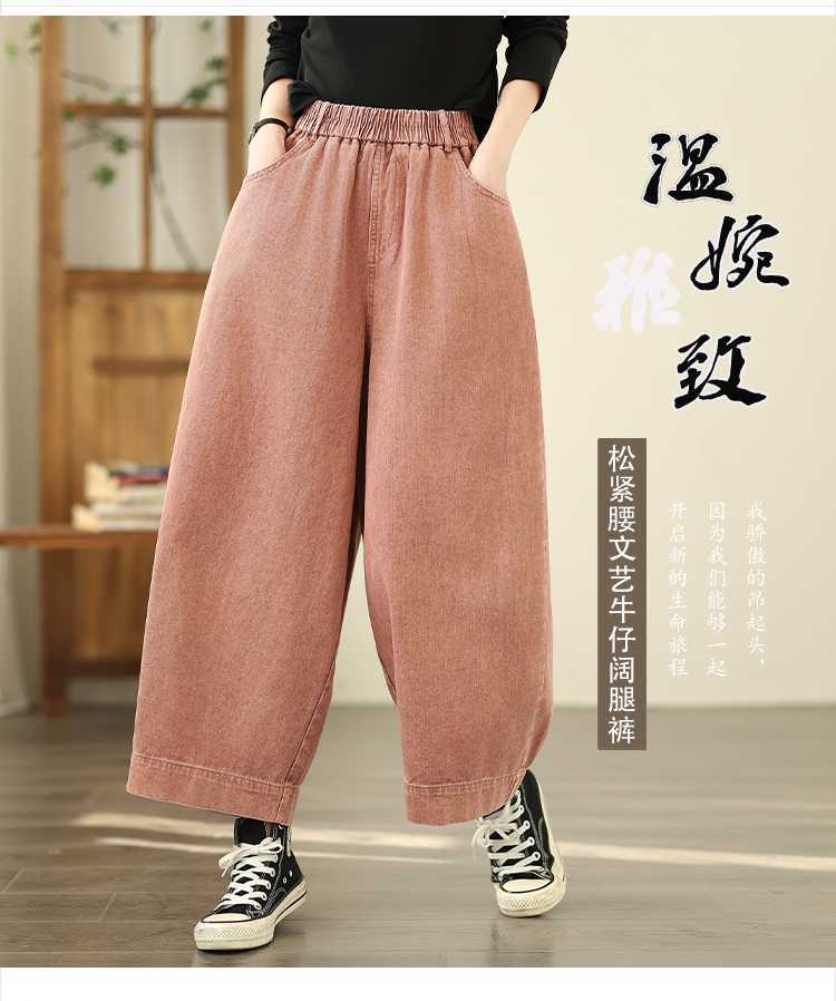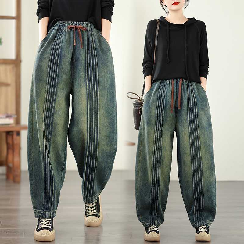 リアルショットスポット2025春新作ゆったり大きいサイズランタンジーンズレディースワイドレッグスリムフロアレングスパンツレディースシンプル