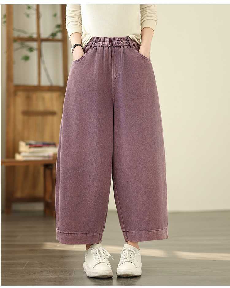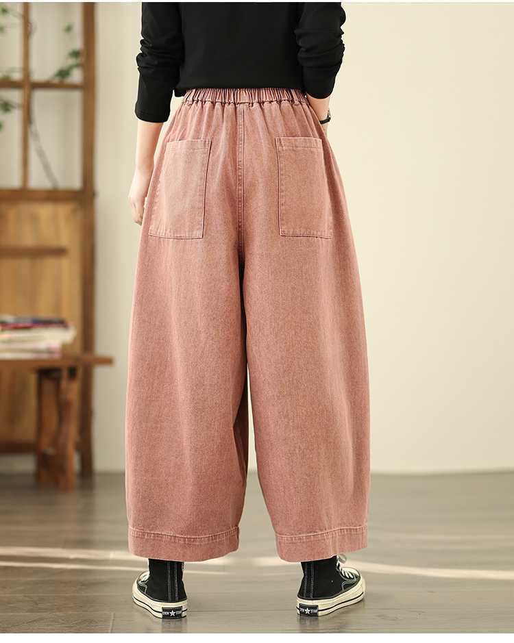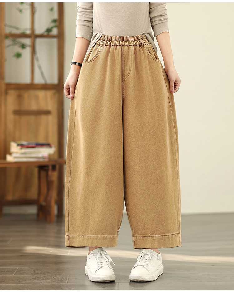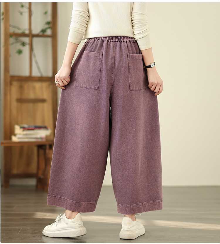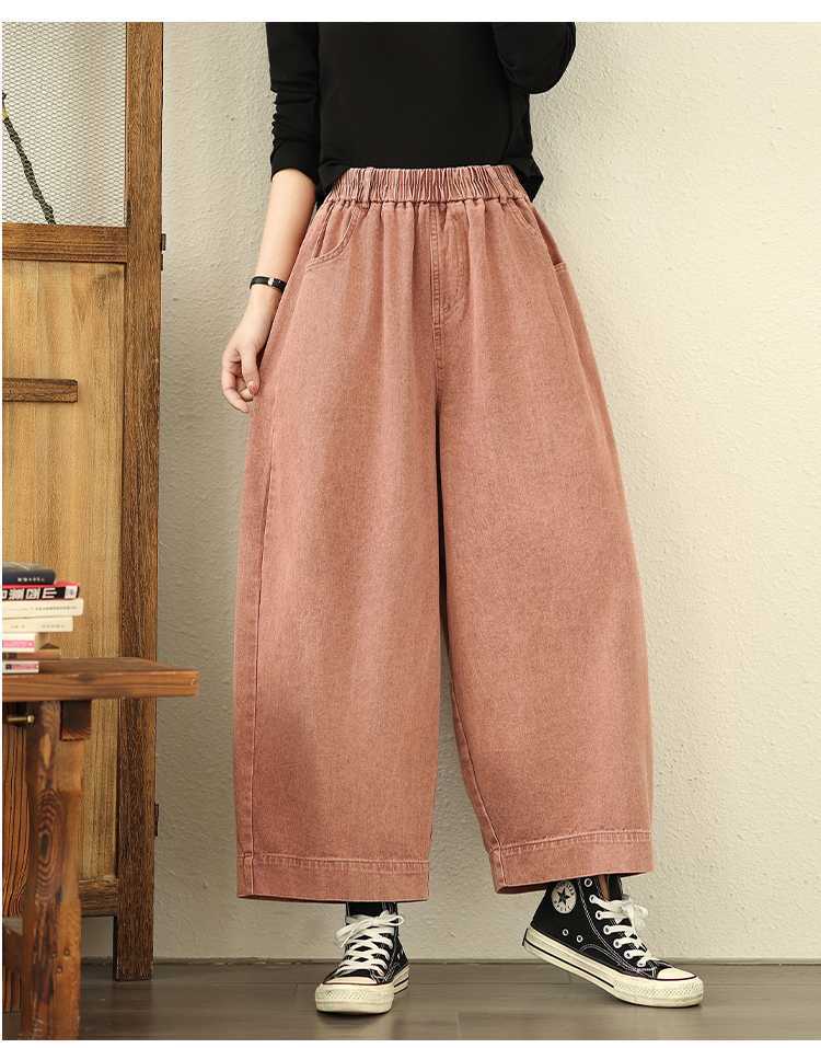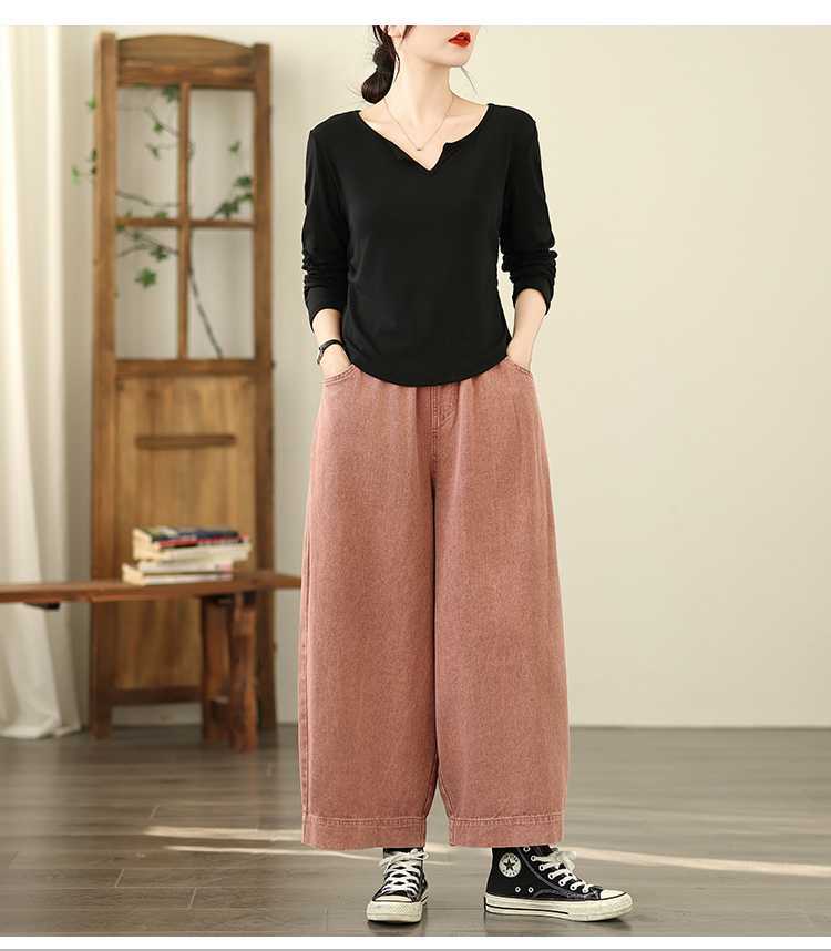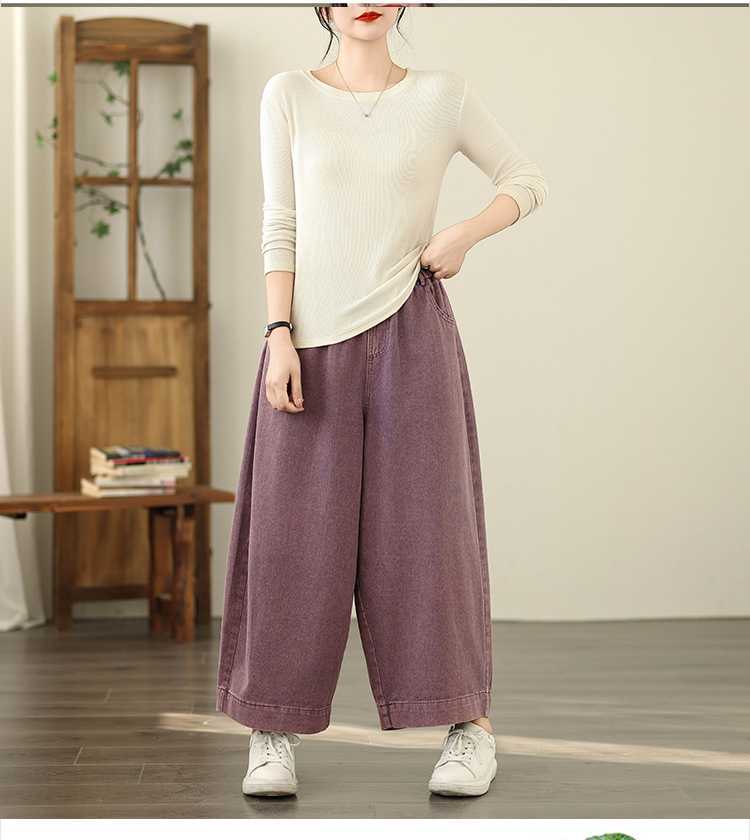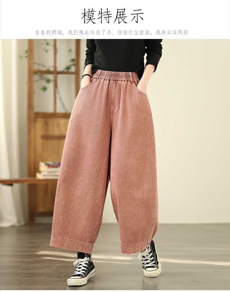 リアルショットスポット2025春新作ゆったり大きいサイズランタンジーンズレディースワイドレッグスリムフロアレングスパンツレディースシンプル