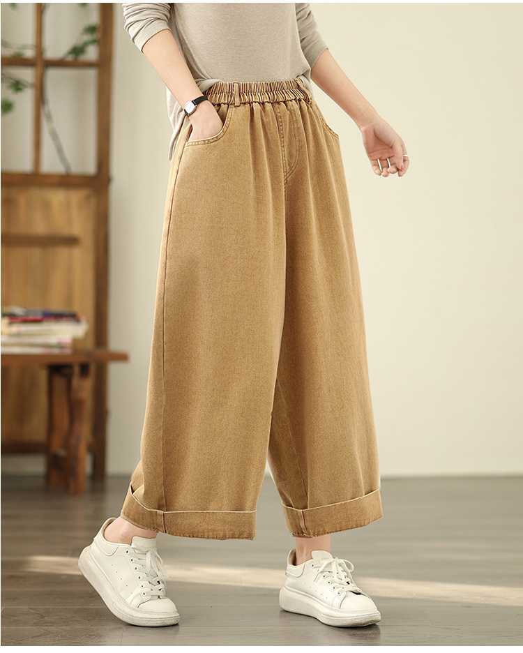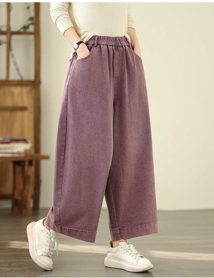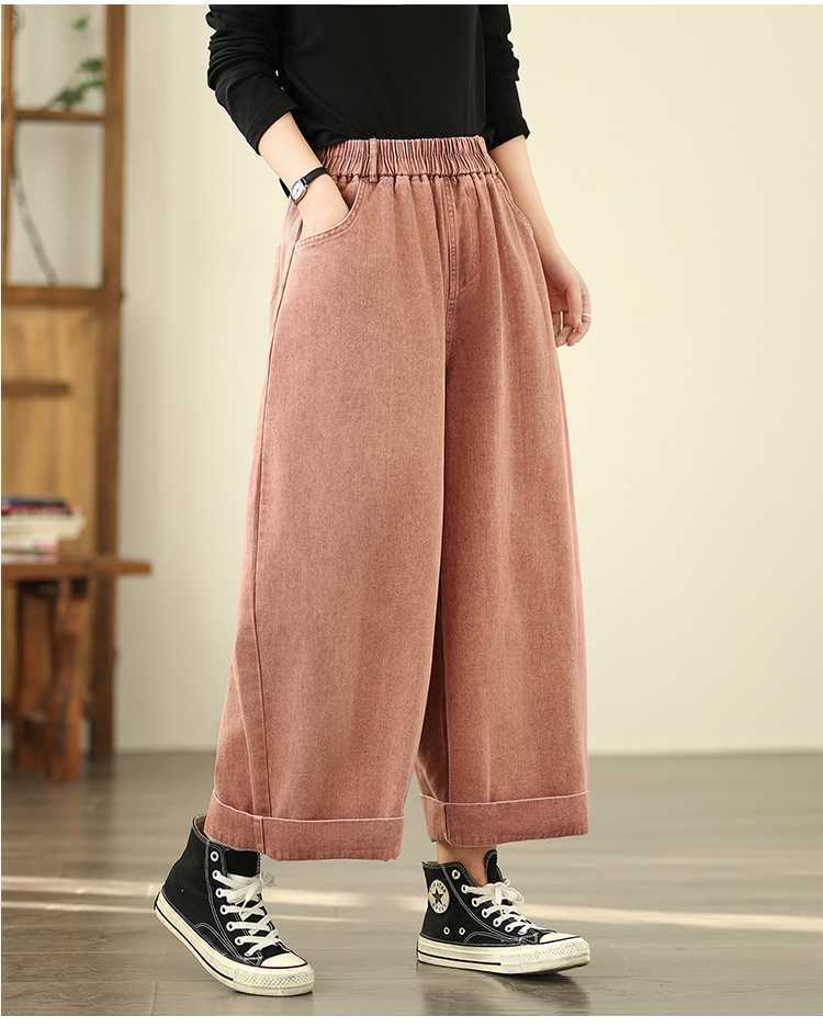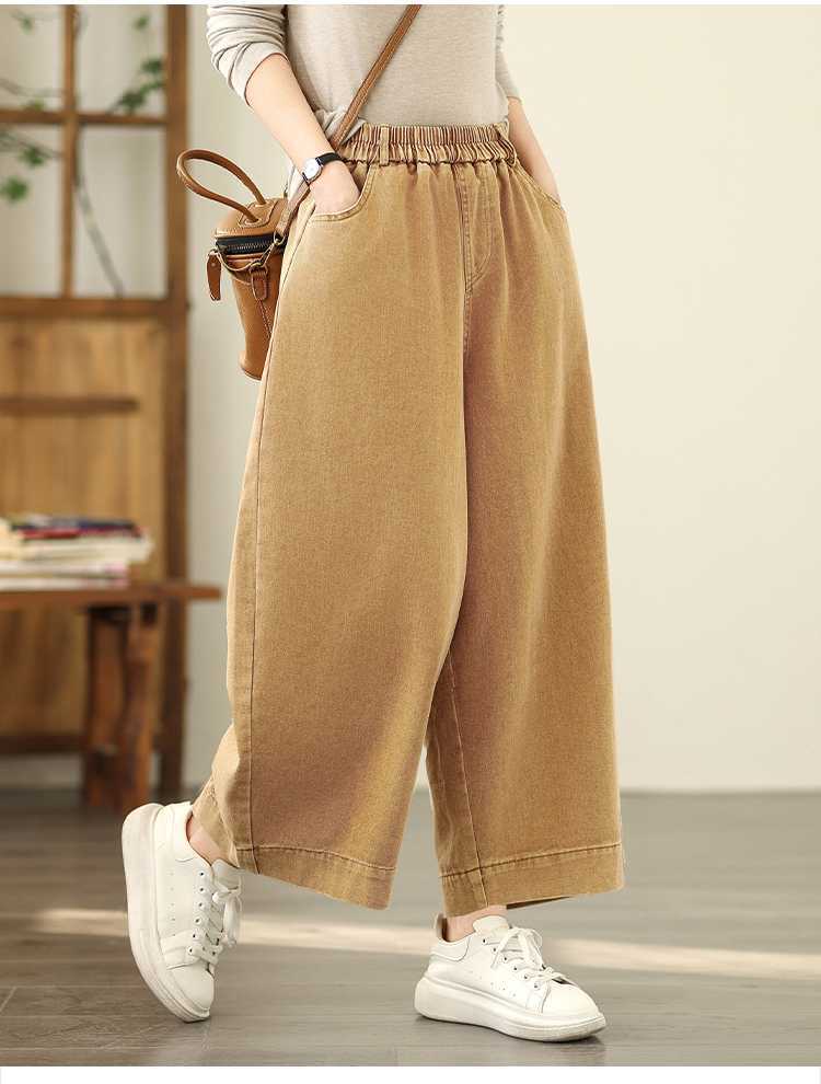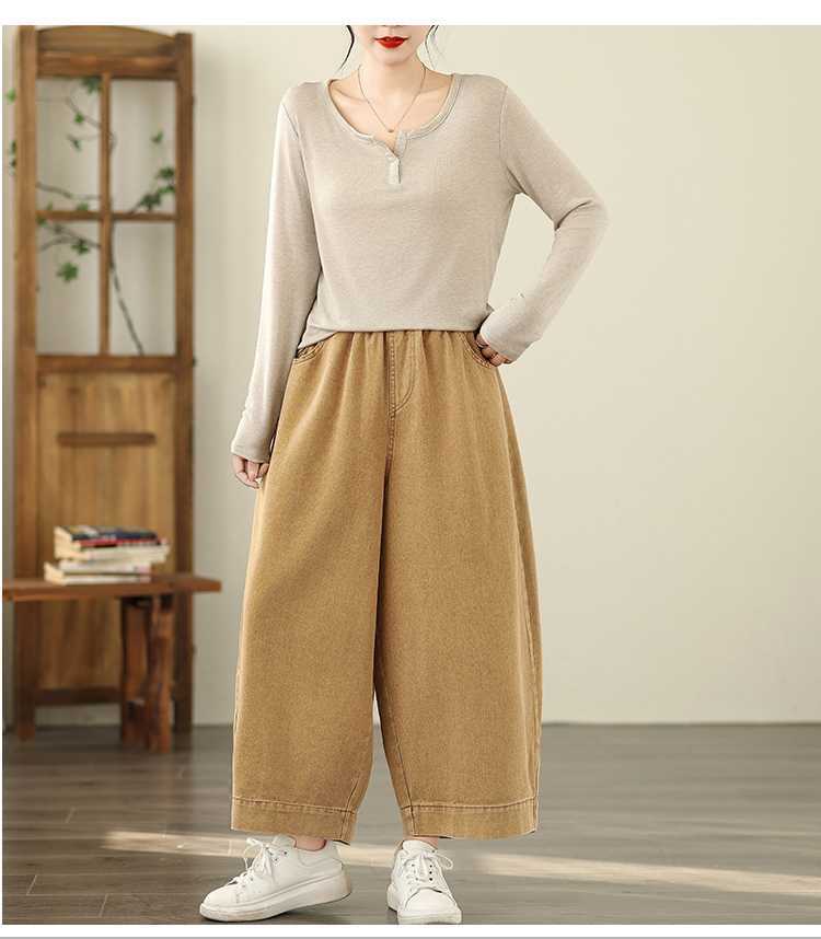 実際に秋冬のレトロな色を炒めます。デニムのワイドパンツを持っています。