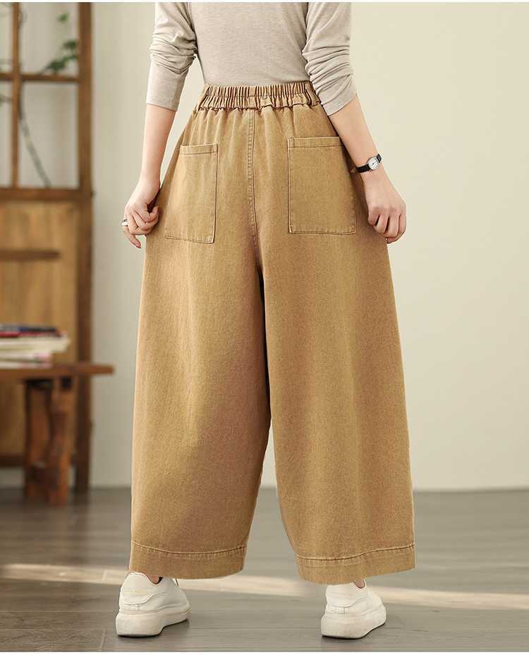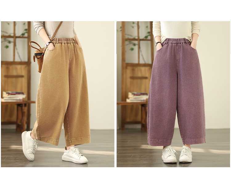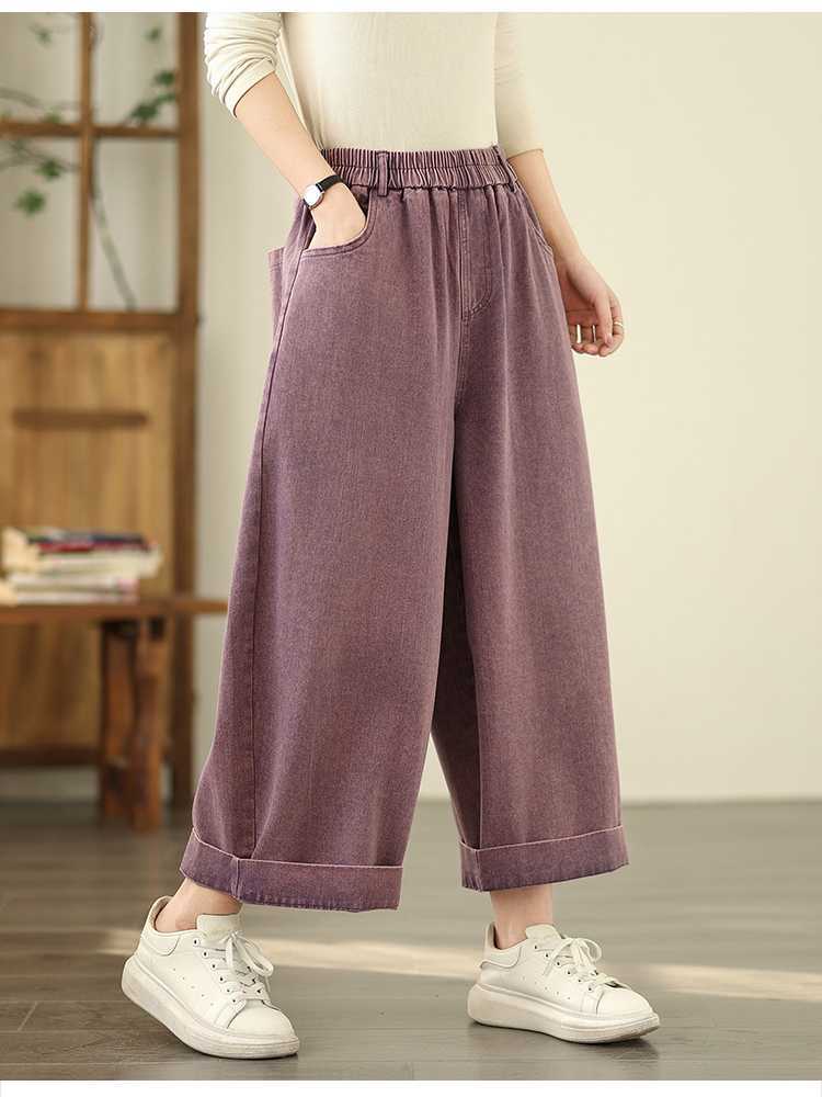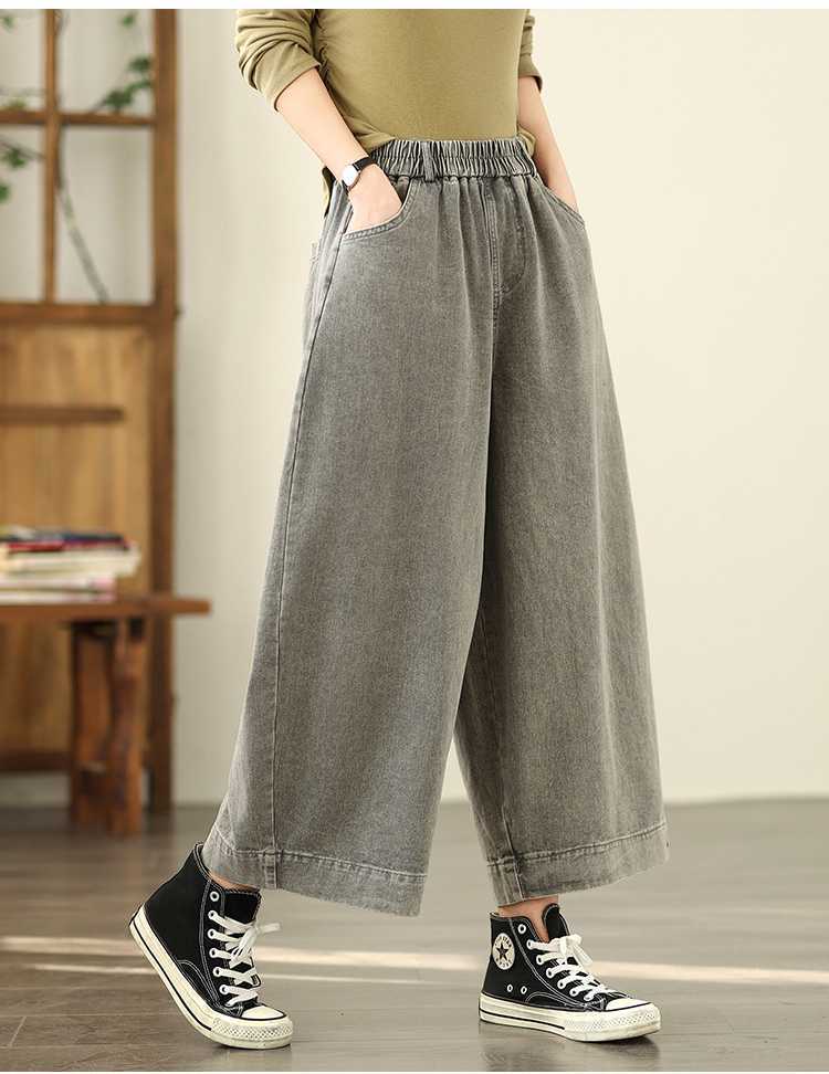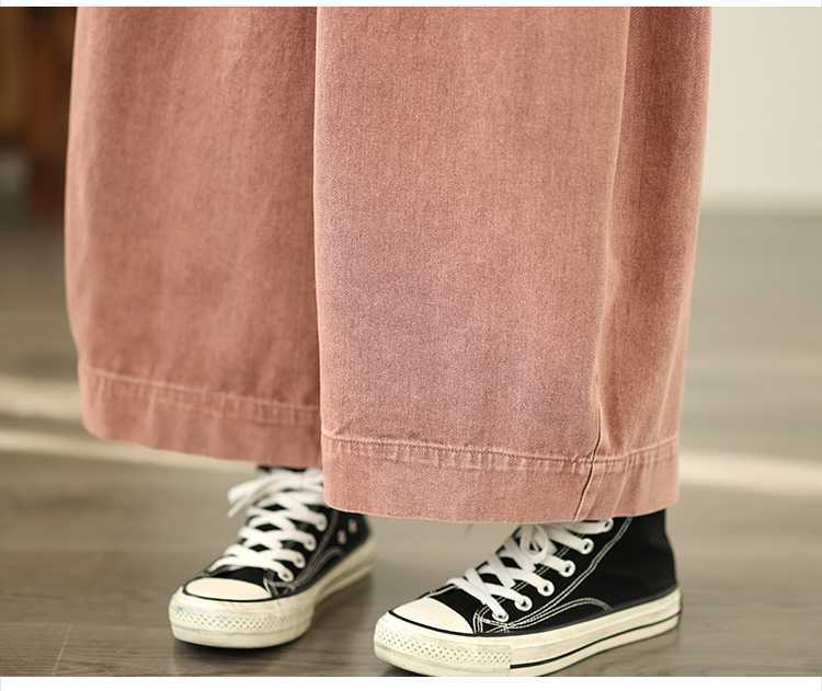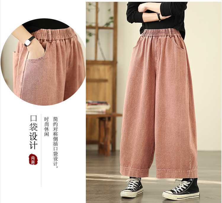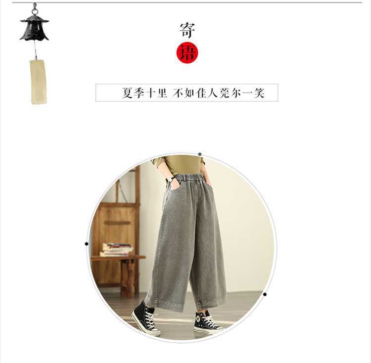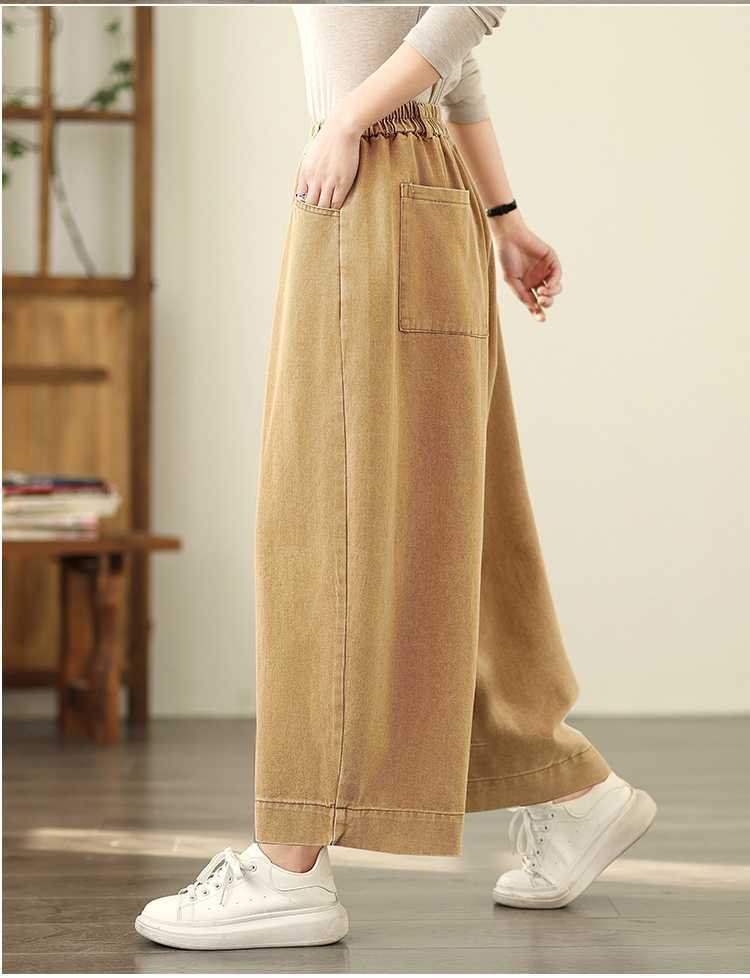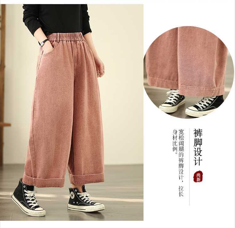 実物写真夏の新しいレトロな新しい中国風のパーソナライズされたウォッシュカラーデニムワイドレッグパンツ女性用ルーズスリムストレートパンツ