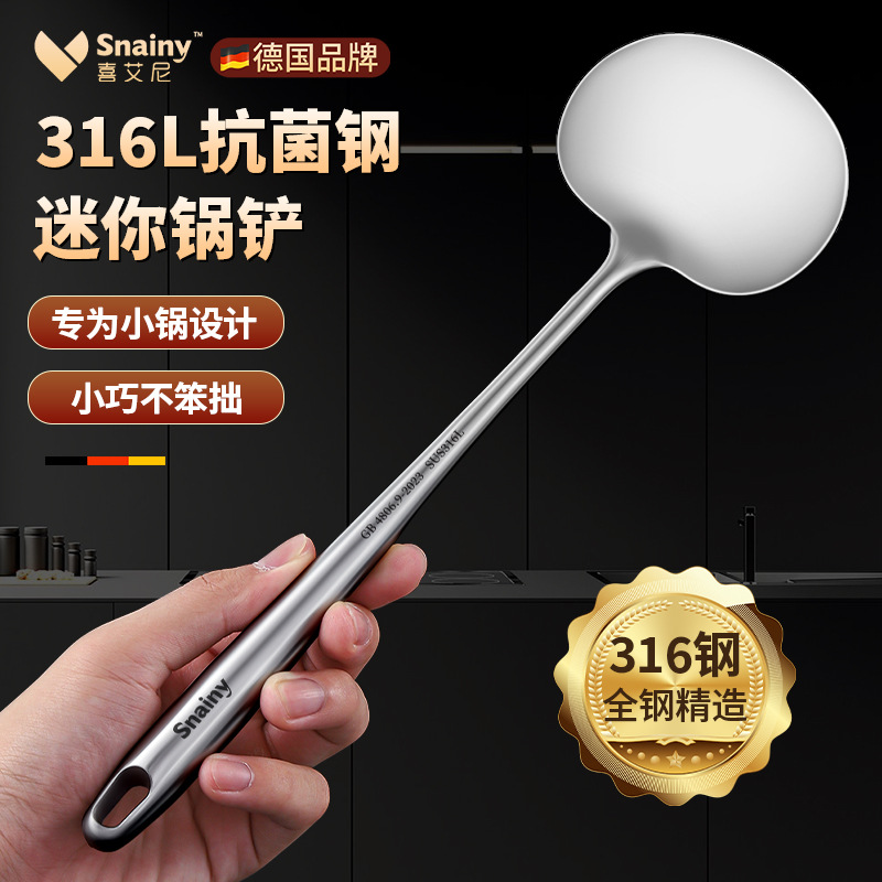 316不锈钢食品级蘑菇铲炒勺小锅铲小号家用一人食迷你炒菜小铲子
