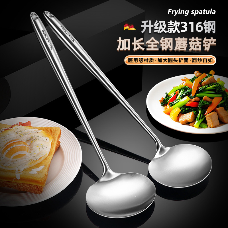 316ステンレスシャベル炒めスプーン鍋シャベルキノコ頭シャベル専用スプーン調理器具延長一体丸炒めスプーン
