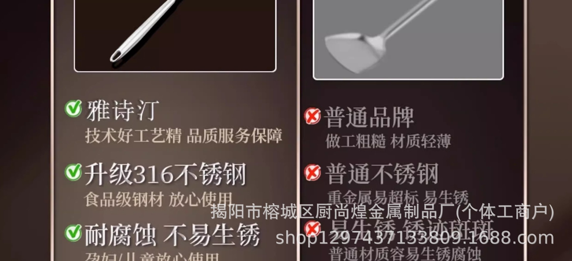 加厚316不锈钢蘑菇型铲子家用炒菜锅铲勺圆铲子厨具套装厨师专用