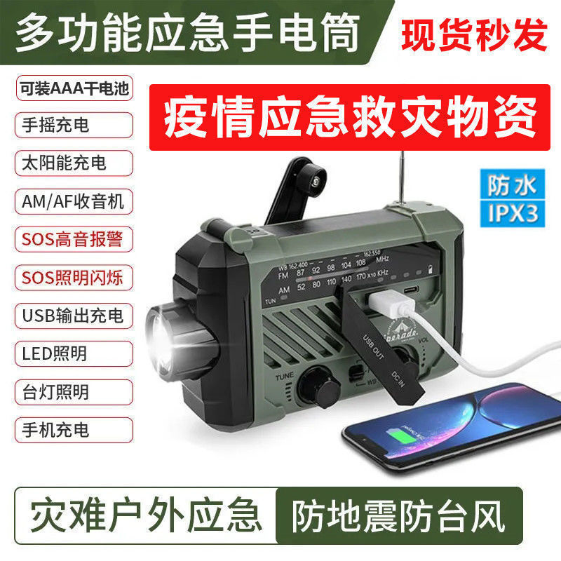 照明充电户外发电多功能台灯应急FM收音机手摇日本太阳能防垒德株