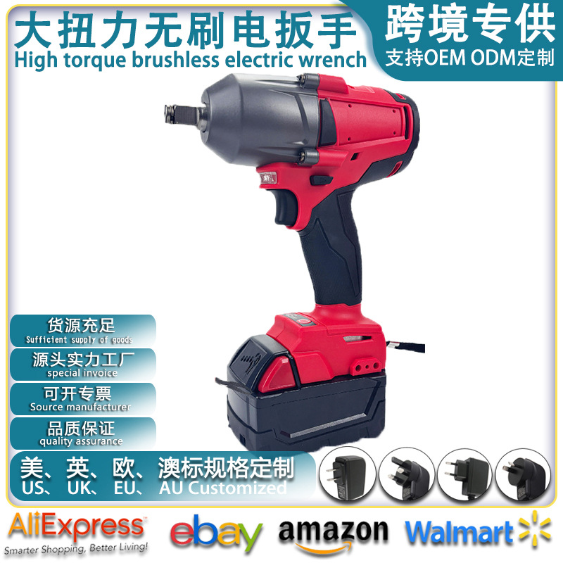 跨境无刷电动扳手数显锂电充电冲击大扭力扳手电动风炮冲击扳手