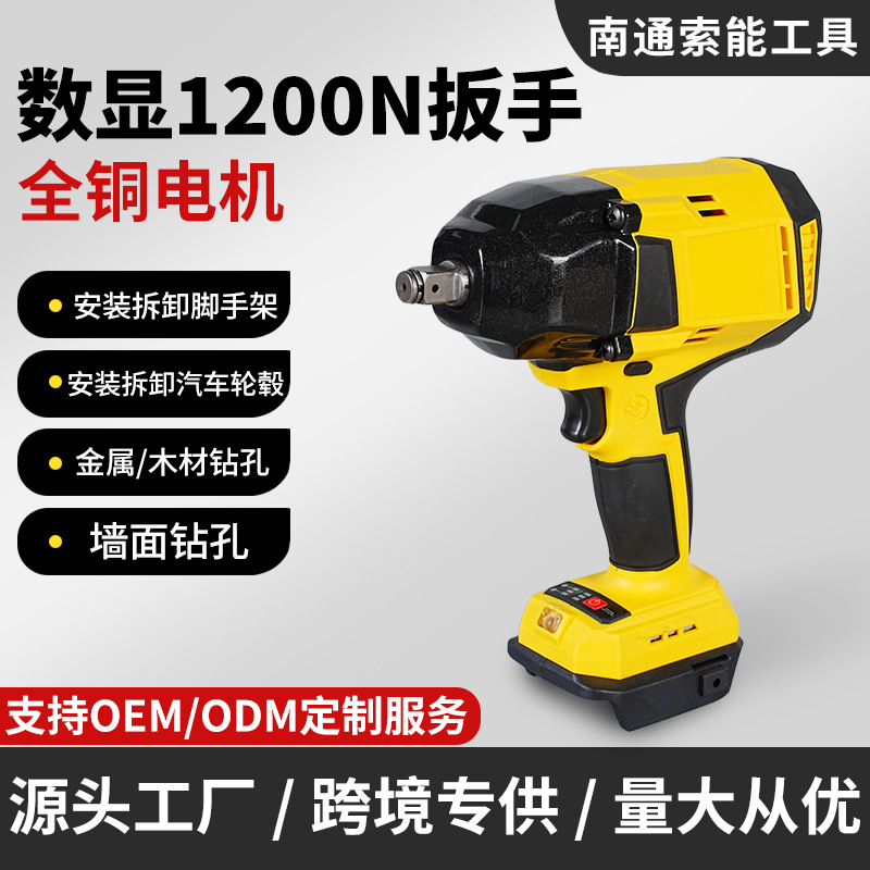 大扭力电动扳手1200N数显锂电充电式强扭力电动扳手汽修跨境外贸
