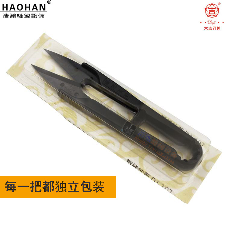 家庭用小型はさみ プラスチックハンドル 糸はさみ 糸切りはさみ U字型はさみ 黒、白、赤 3色 DJ-107 シングルハンドル