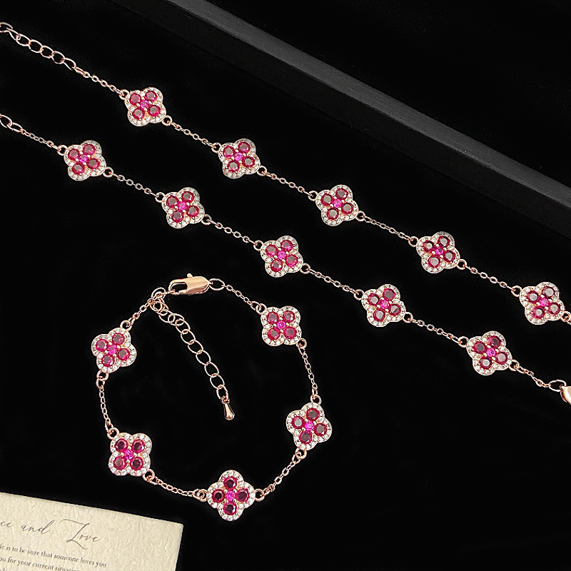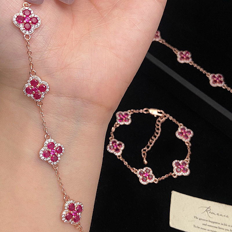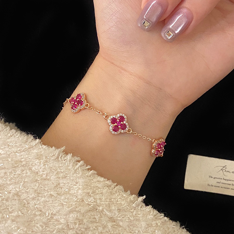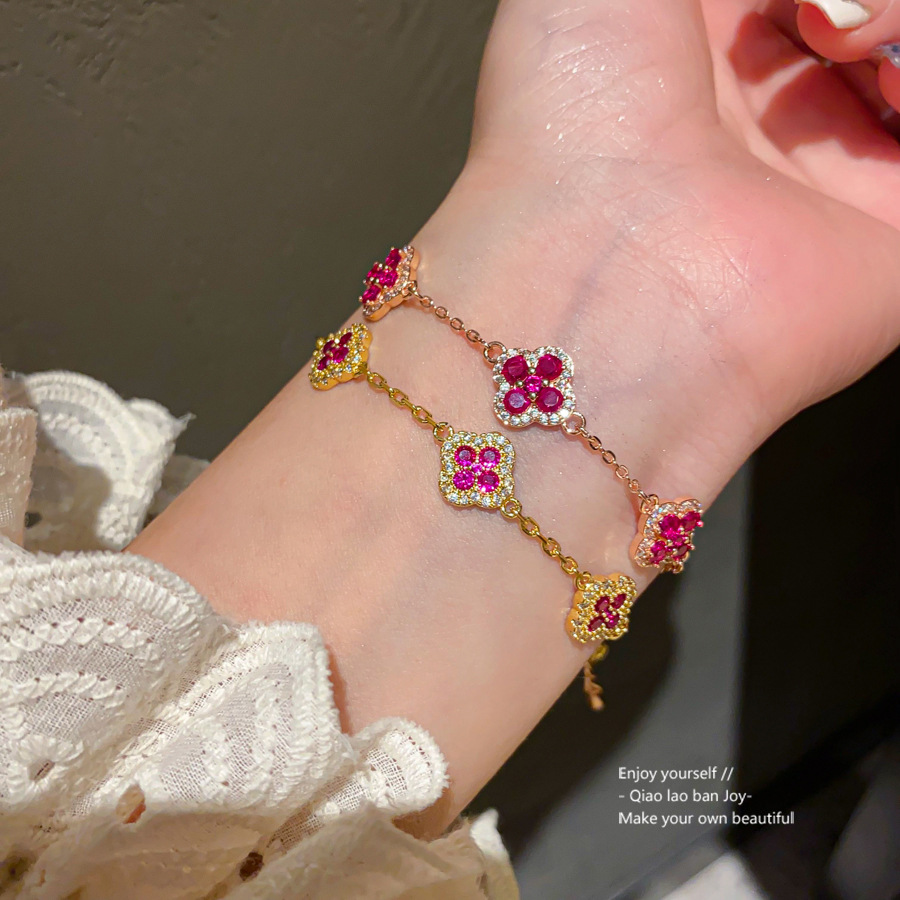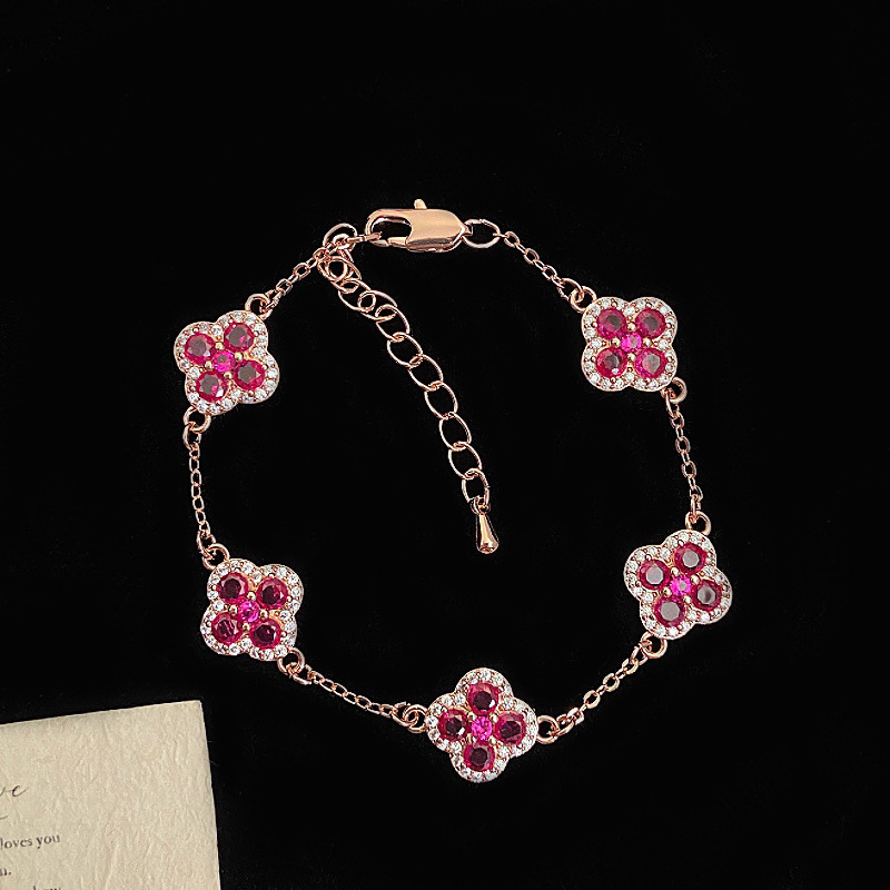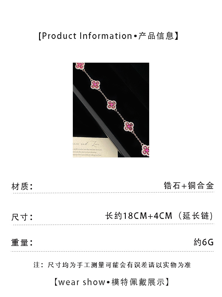 ローズゴールド四つ葉の花フルダイヤモンドマイクロ象嵌ジルコンローズピンクブレスレット女性用絶妙なハイエンドライトラグジュアリー多用途ハンドジュエリー