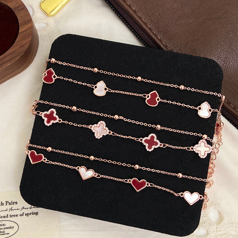 玫瑰金天然贝壳双层叠戴手链女爱心葫芦四叶花精致甜美手串手饰