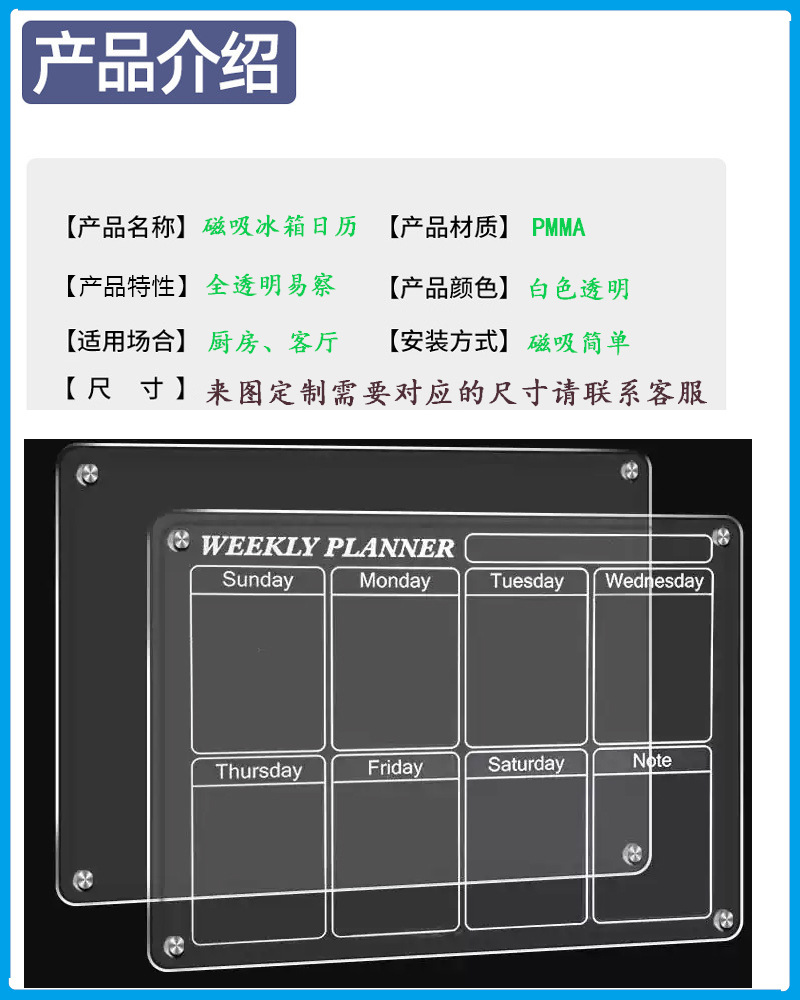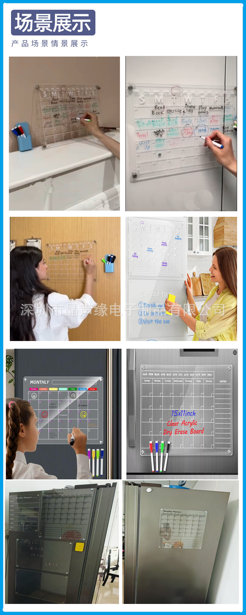 冰箱贴日历留言板展示贴家用磁吸可擦写计划表写字记事板子亚克力